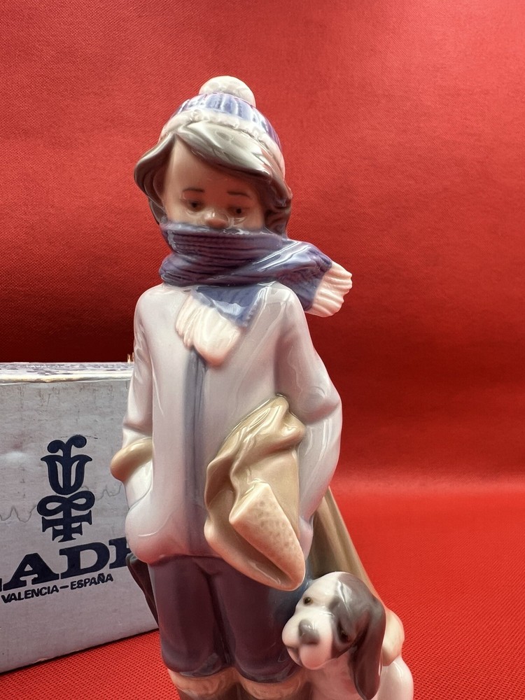 Lladro Winter Boy with Dog # 5220 Figurine Made in Spain. Condition is New. Shipped with USPS Ground Advantage.