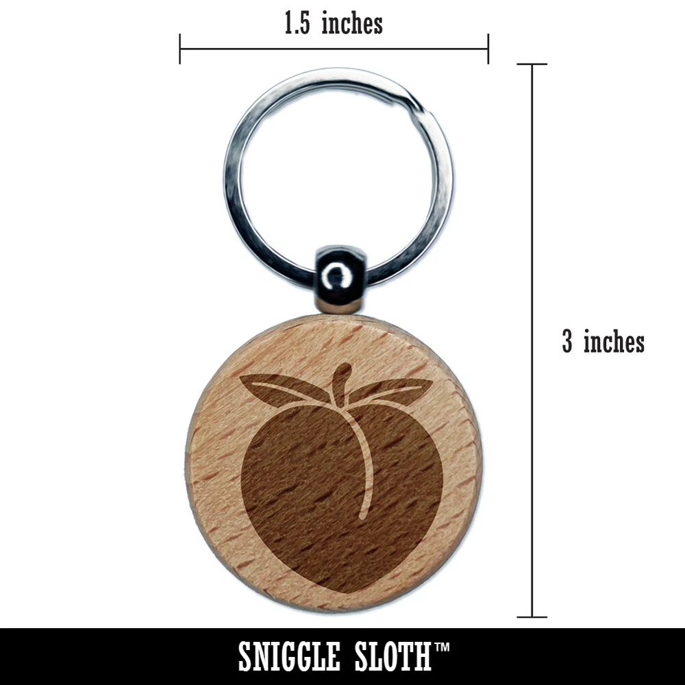 Llavero redondo de madera maciza grabada melocotón regordete etiqueta encanto