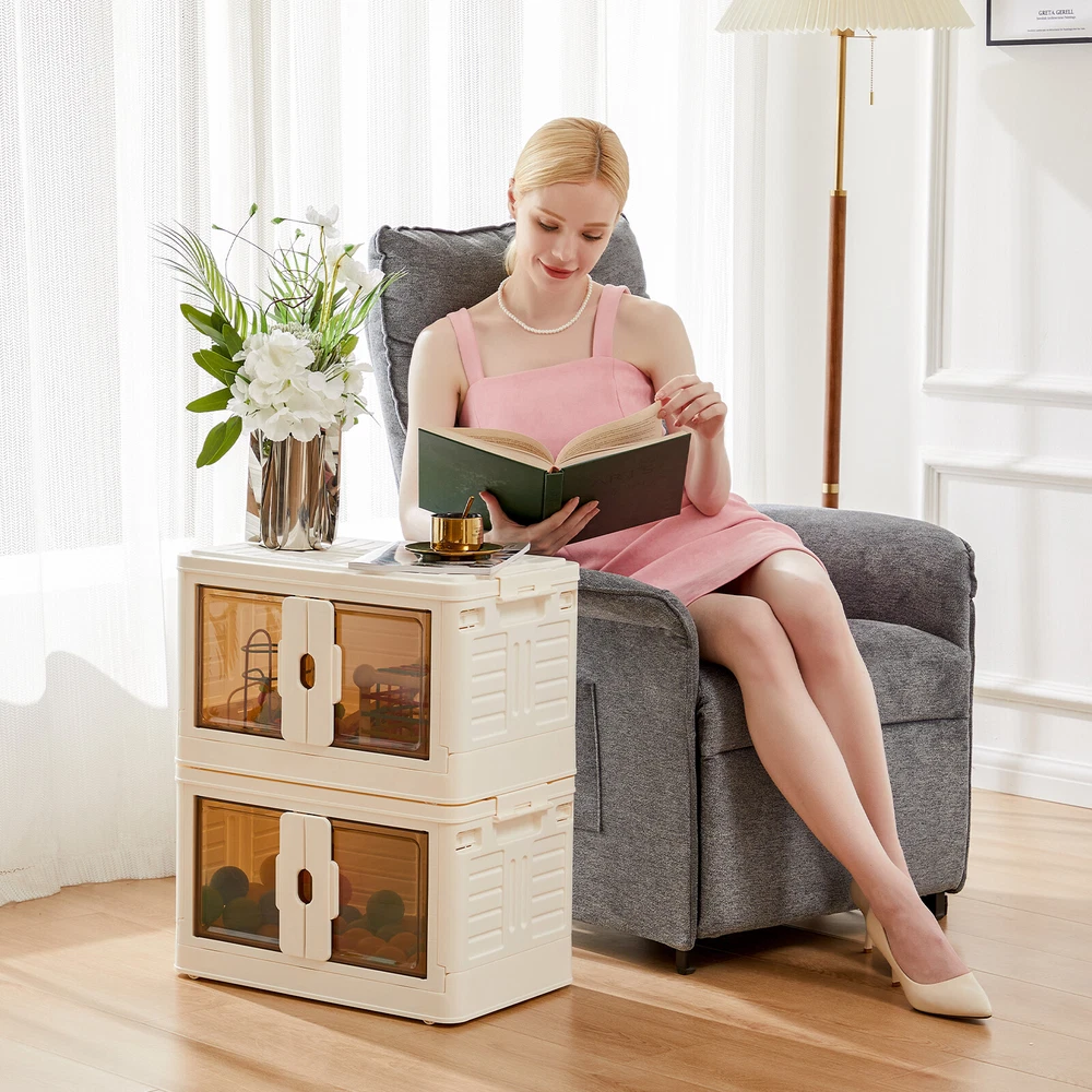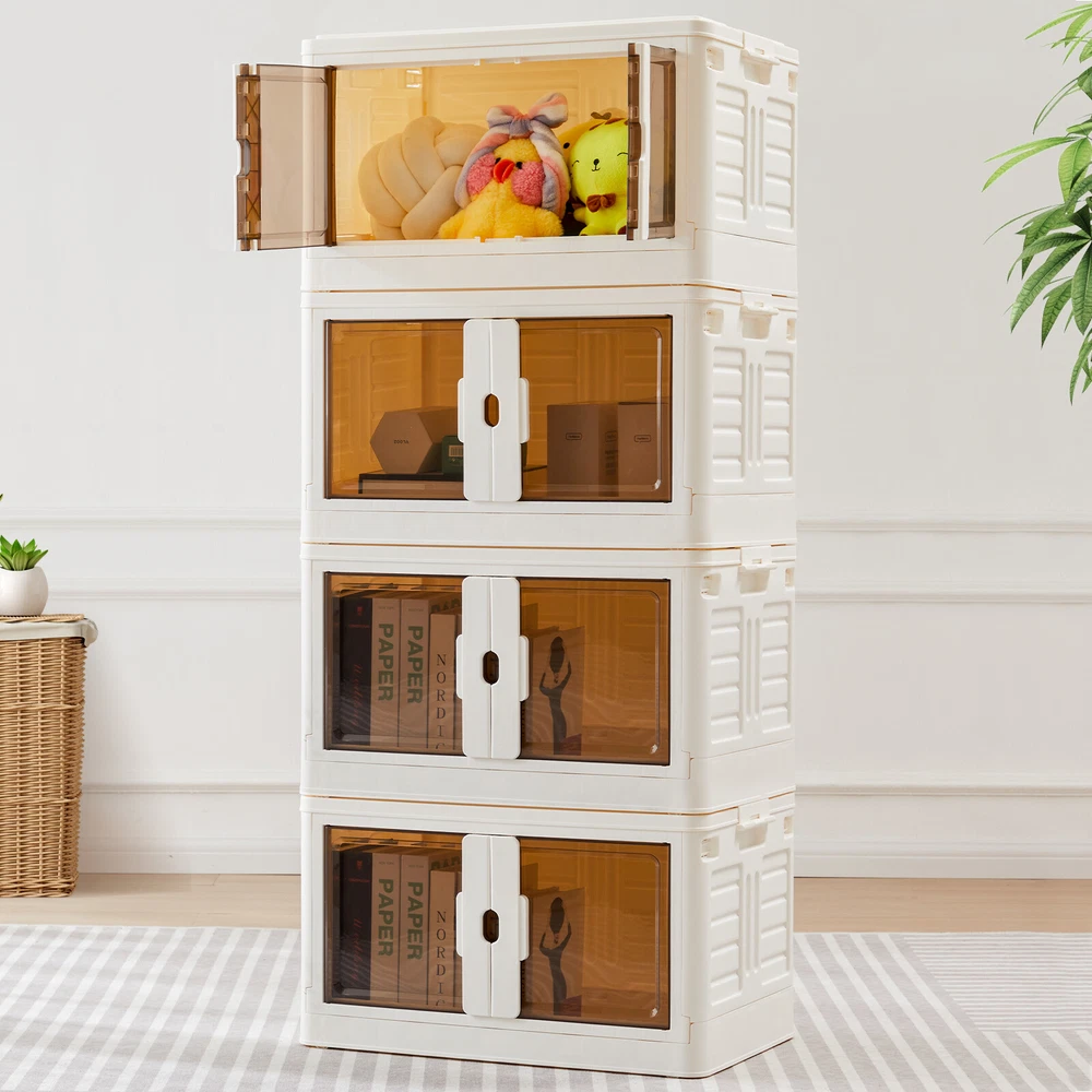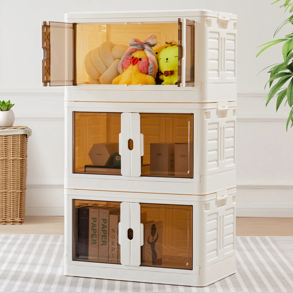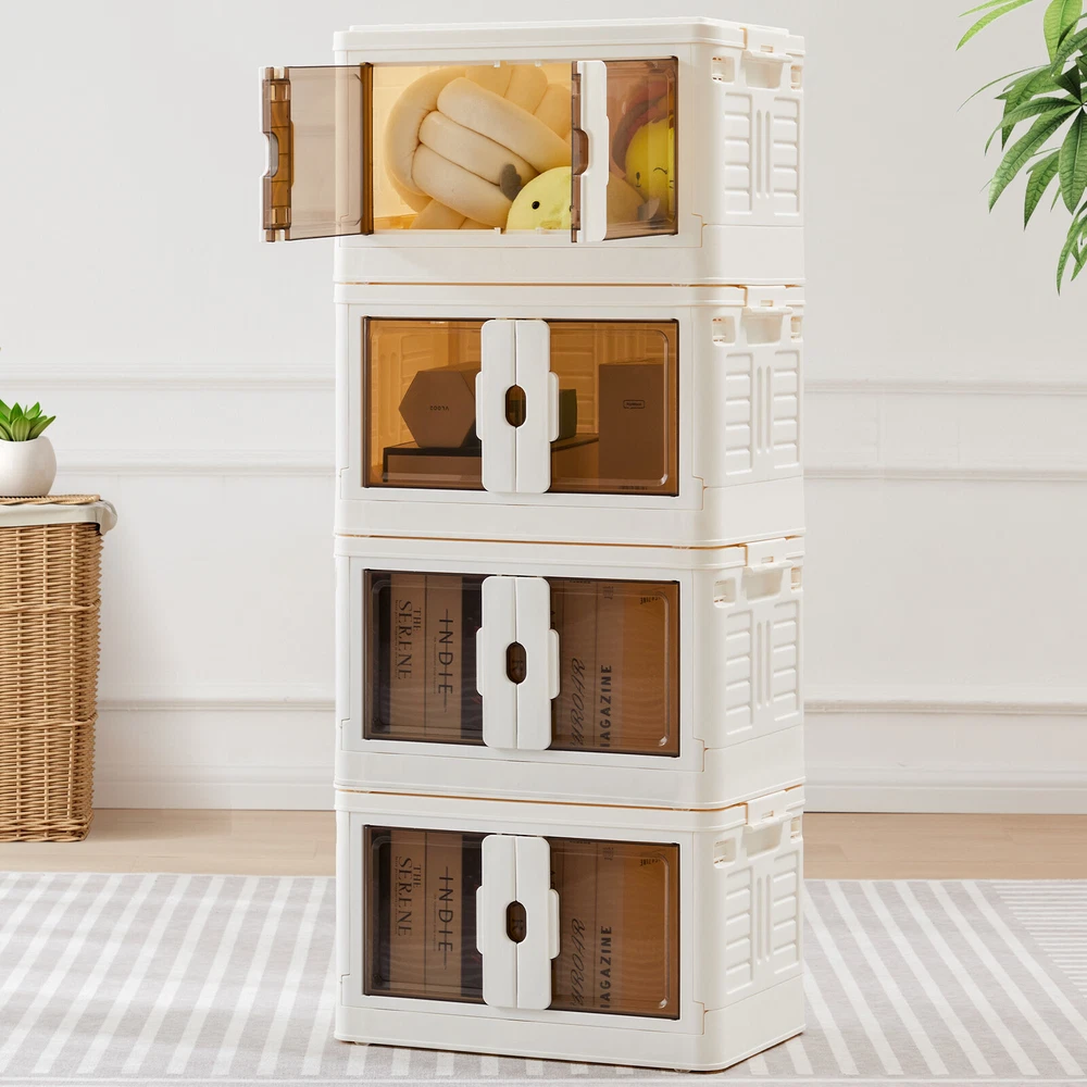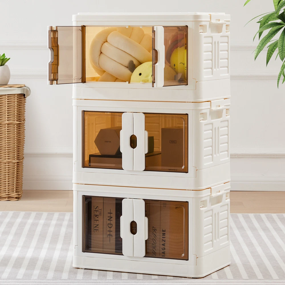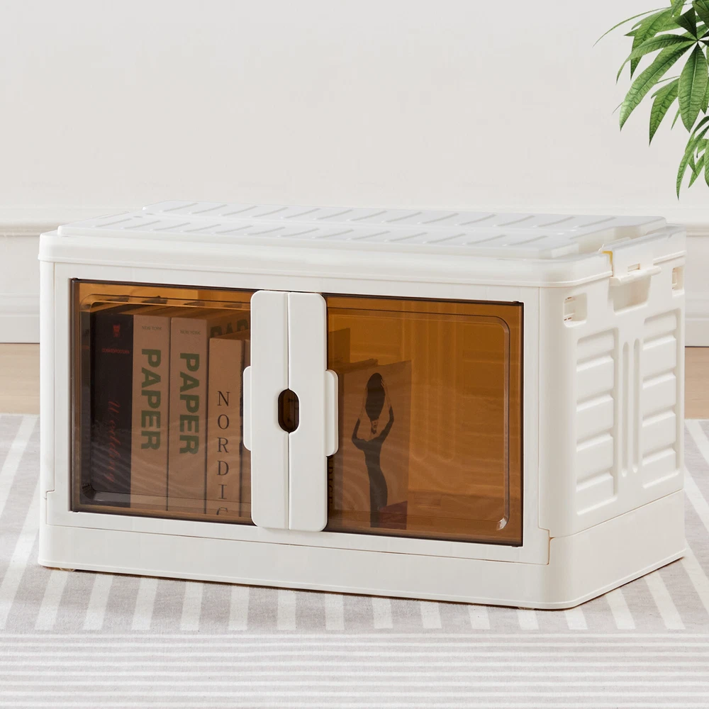Product Description Color Plastic white Material polypropylene plastic Special Feature Portable, Removable, Foldable, Lockable Style single box Product Dimensions 26"L x 16"W x 15"H Closure Type fold, Buckle Package include: 1 set of Stackable Plastic Storage