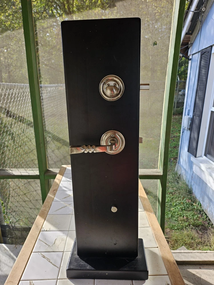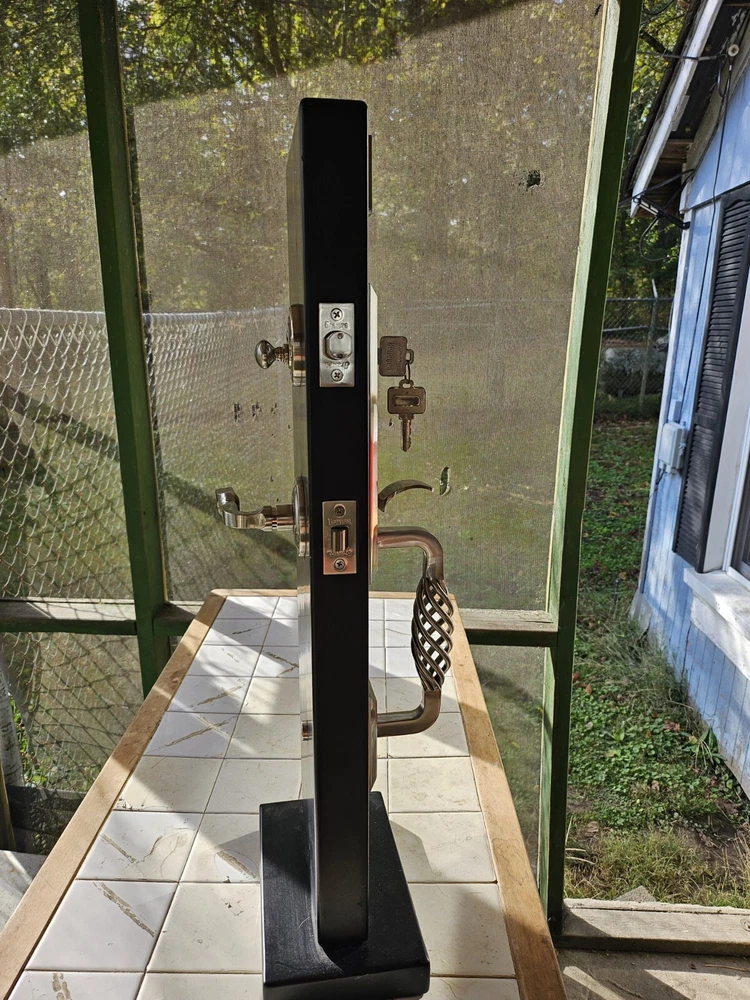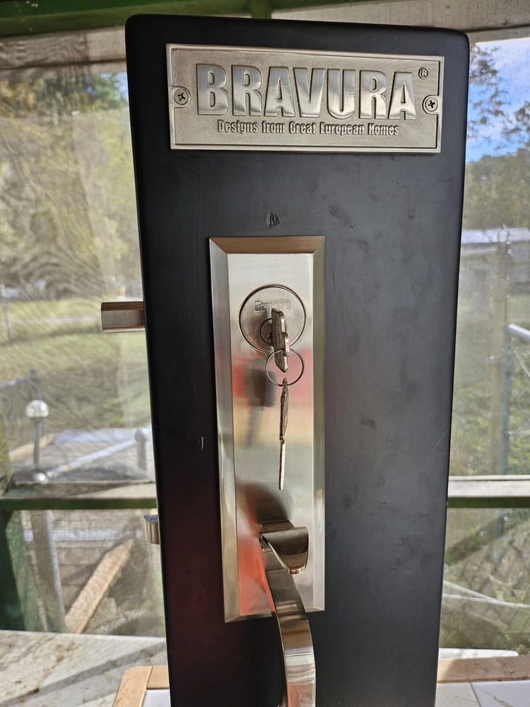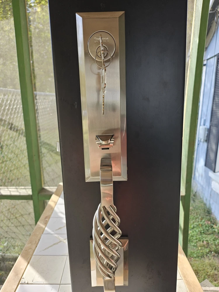 Enhance the look of your residential front entrance door with this beautiful Bravura Entrance Lockset Designs from Great European Homes Display Model. Crafted from high-quality brass material, this contemporary style door handle is suitable for right-hand/inswing door handing and comes with hardware and key. The glossy finish and silver color add to its elegance, making it a perfect addition to any modern home. This easy-to-install door handle / lever set is designed for residential use and features keyed entry for added security. Made in the United States, this unit comes as a single pack and is perfect for those looking to upgrade their front entrance door. Add this Bravura Entrance Lockset to your cart today and give your home a stylish and functional upgrade. THIS IS A FULLY FUNCTIONAL DISPLAY MODEL.