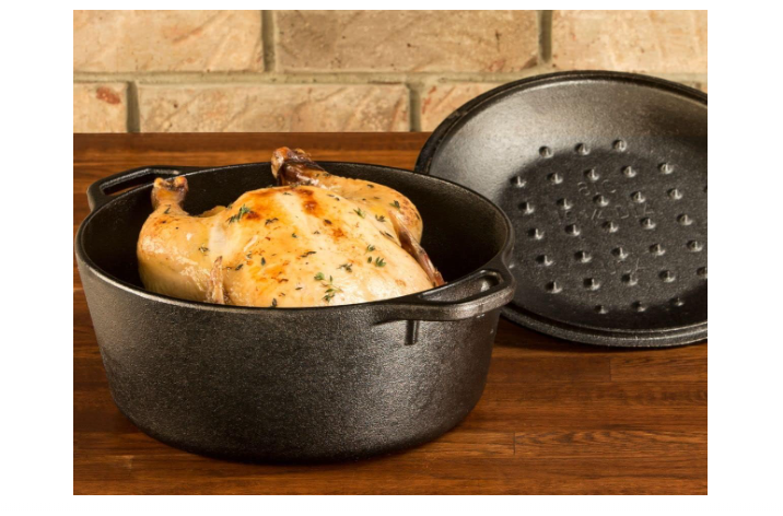 2-in-1 Pre-Seasoned 5 qt Cast Iron Dutch Oven with Handles for Camping