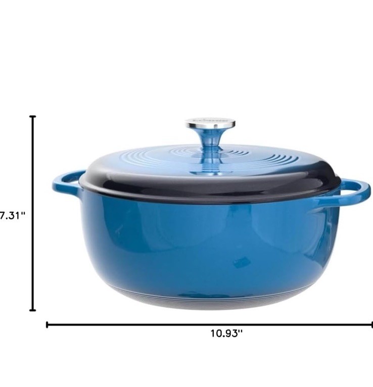 YOUR GO-TO DUTCH OVEN: This Lodge 6 Quart Enameled Cast Iron Dutch Oven combines durability and elegance, perfect for marinating, cooking, baking, and serving. With dual handles and an oven-safe temperature of up to 500°F, it’s a kitchen essential. WHAT IS PORCELAIN ENAMEL ON CAST IRON?: A durable glass coating bonded to cast iron at high temperatures. This porcelain enamel is heat-tolerant, impervious to water, and resistant to stains, making it ideal for long-lasting cooking and easy cleanup. EASY TO COOK AND CLEAN: The smooth enameled interior promotes even cooking, caramelization, and easy release of food. Though dishwasher-safe, handwashing with warm, soapy water is recommended for maintaining the Dutch oven’s finish and performance. SUPERIOR HEAT RETENTION: Enjoy even heat distribution and retention thanks to the cast iron construction. The tight-fitting lid locks in moisture, perfect for slow-cooking stews, pot roasts, or beans, while conserving energy during cooking.