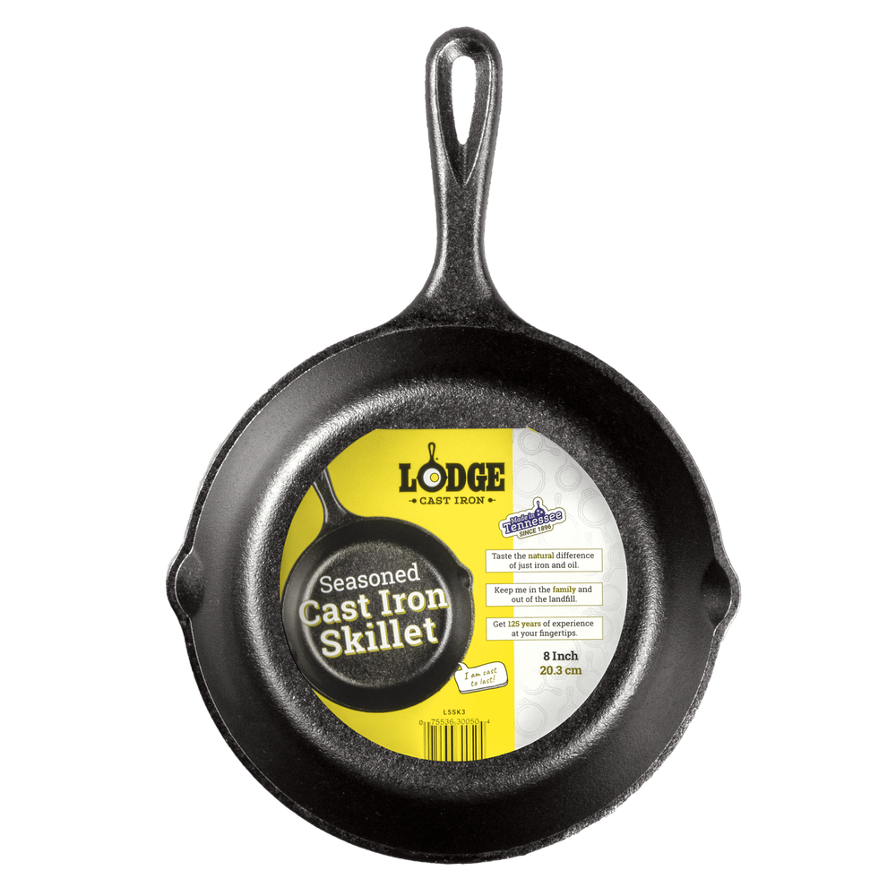 The Lodge Seasoned 8 Inch Cast Iron Skillet is a meal-time legend that will be your must-have skillet for years to come. Made with just iron and oil, the cast iron skillet features a helpful assist handle for lifting or hanging. The skillet’s naturally nonstick surface provides excellent heat retention and distribution for consistent cooking at any temperature. Perfect for cooking on the grill, over a campfire, in the oven, or on any stove—including glass-top stoves and induction. Use it to sauté, sear, bake, broil, braise, fry, or grill—this skillet loves to multitask. Lodge cast iron is built to last for generations, so you can serve memories at every meal, year after year. The Lodge cast iron skillet is seasoned, ready to use, and easy to care for. Since 1896, Lodge Cast Iron has been making heirloom-quality skillets, pans, dutch ovens, bakeware, and grilling gear, bringing professional chefs, home-cooks, and outdoors folk everything they need to make incredible meals. Our cast iron is made in Tennessee, and we’re proud to be a family-owned company with a strong commitment to quality, values, and integrity. As the original cast iron manufacturer, we proudly set the standard in cookware that can go anywhere and do anything. Non-stick surface seasoned with 100% natural vegetable oil Safe for use in the oven, on the stove, on the grill or over a campfire Great for high heat cooking and searing Easy to clean, just hand wash, dry and rub with oil Made of all natural ingredients Cookware that stays in the family and out of the landfill Made in Tennessee