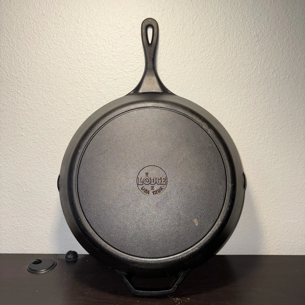 Lodge Cast Iron Skillet 12SK 13 Inch Frying Pan USA Dual Handle Large Round
