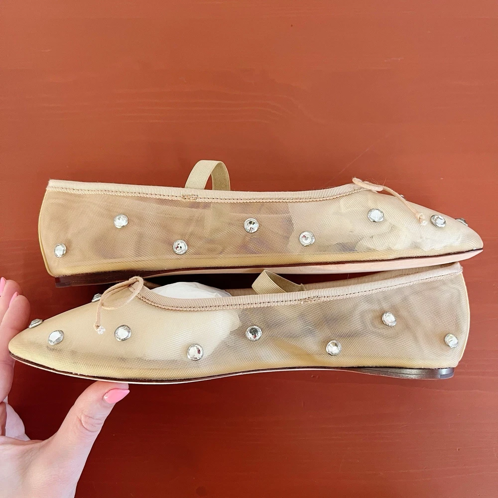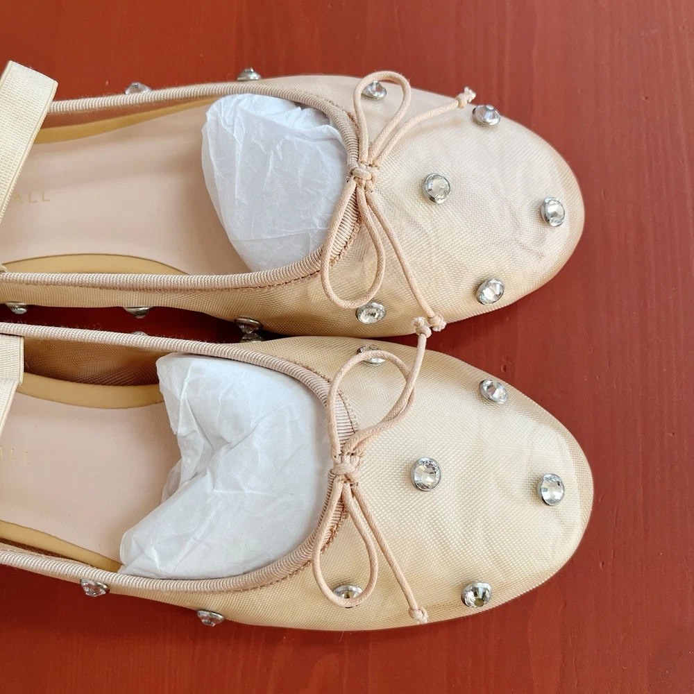 Brand new without box Loeffler Randall Leonie Crystal Mesh Ballet Flats in Caramel/Crystal. Size 9. Slip on with elastic strap. Almond toe. Polyester/leather. Bow tie details. Retail for $295. NWOB. Wedding, bride, party, cocktail, girly, romantic.