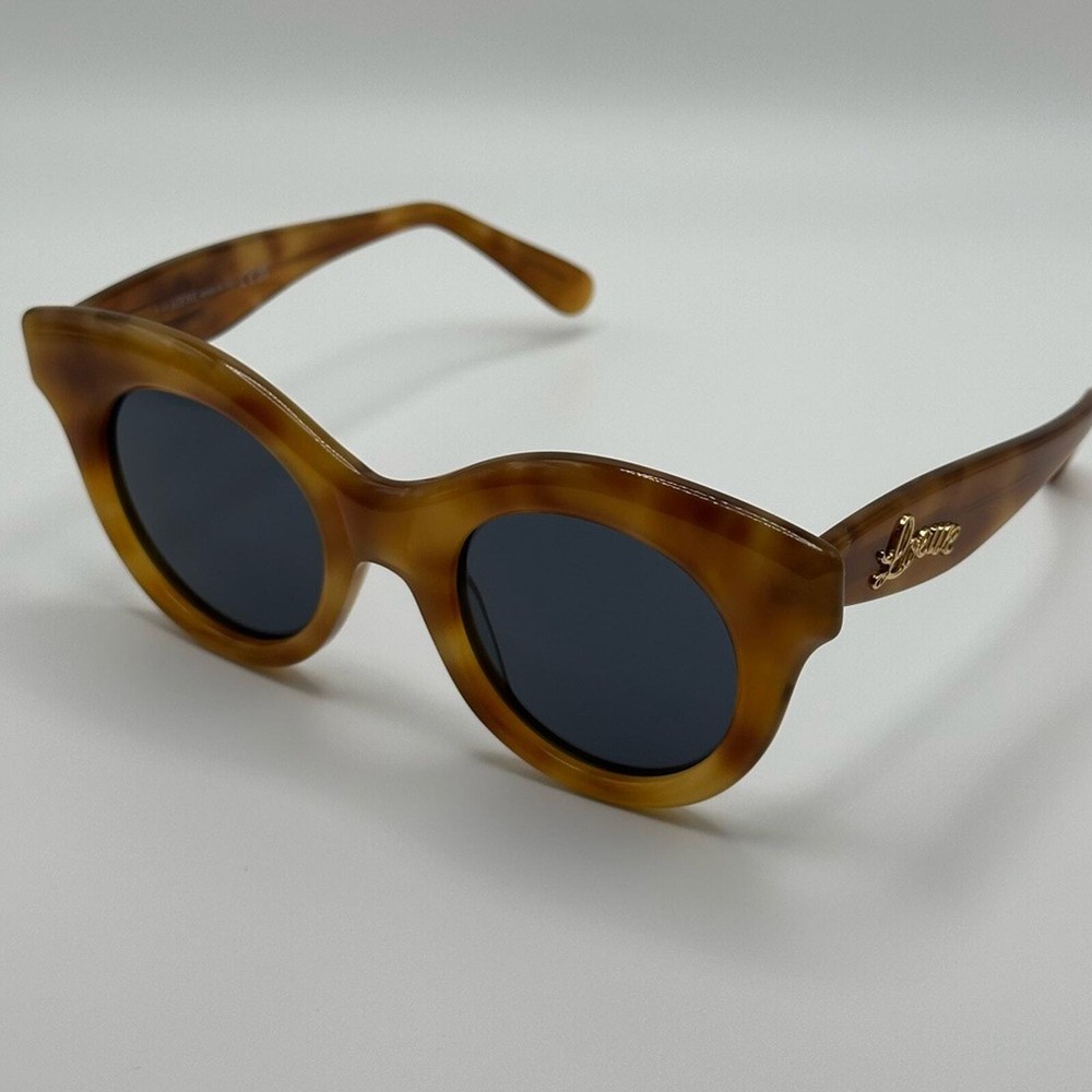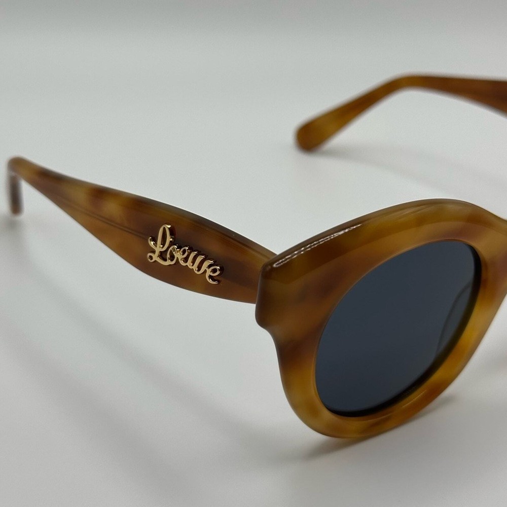 BRAND NEW AND AUTHENTIC LOEWE SUNGLASSES Frame Color: Havana (Tortoise Brown) Lens Color: Dark Blue Frame Shape: Round Cat-Eye Frame Material: Acetate Lens Width: 49 mm Bridge Width: 23 mm Temple (Arm) Length: 145 mm UV Protection: 100% UV protection Country of Manufacture: Italy Comes with original packaging and all accessories SAME DAY SHIPPING
