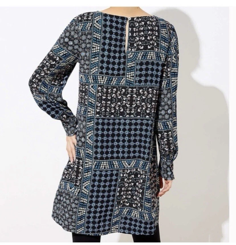 Loft Petites Black Blue Pink Patchwork Ditsy Floral Long Sleeve Dress Sz 2P