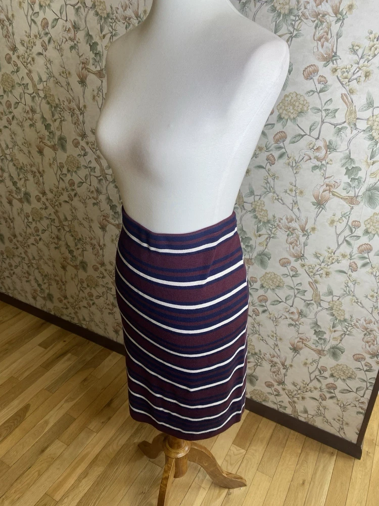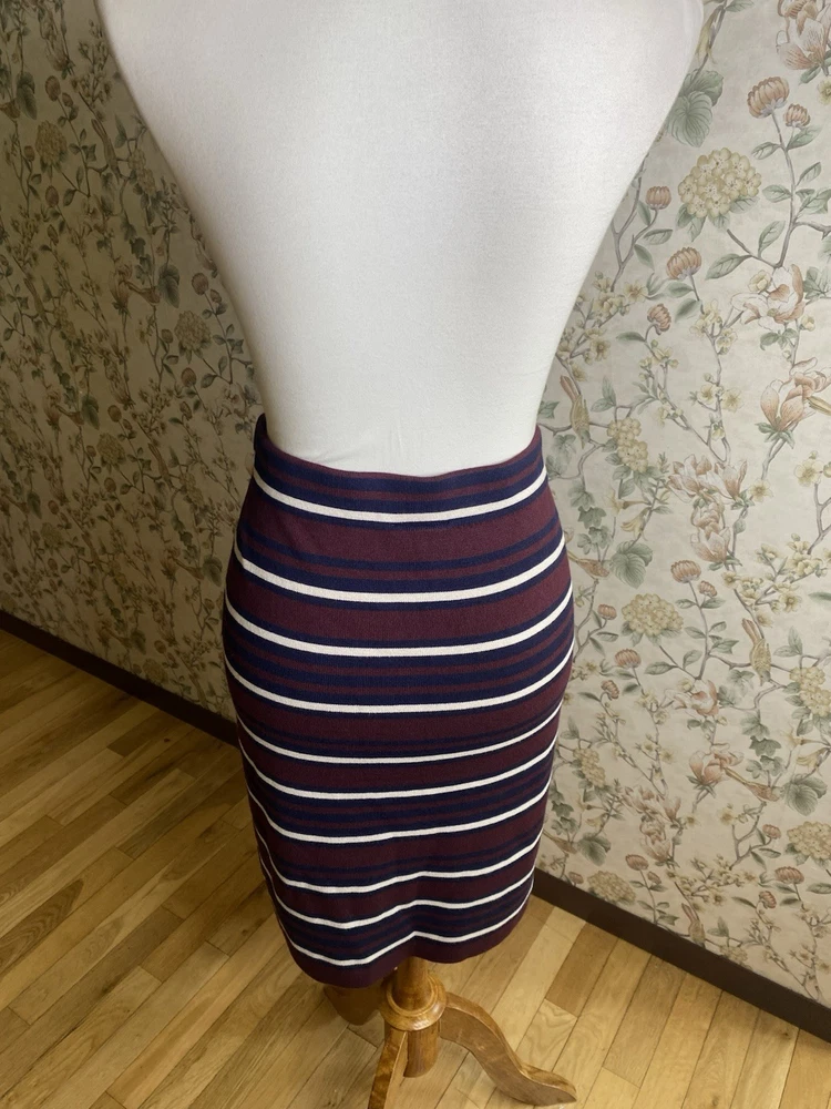 Size: M Pattern: Striped Brand: LOFT Department: Women Skirt Length: Knee Length Color: Maroon Style: Straight & Pencil Type: Skirt Size Type: Regular Closure: Pull On