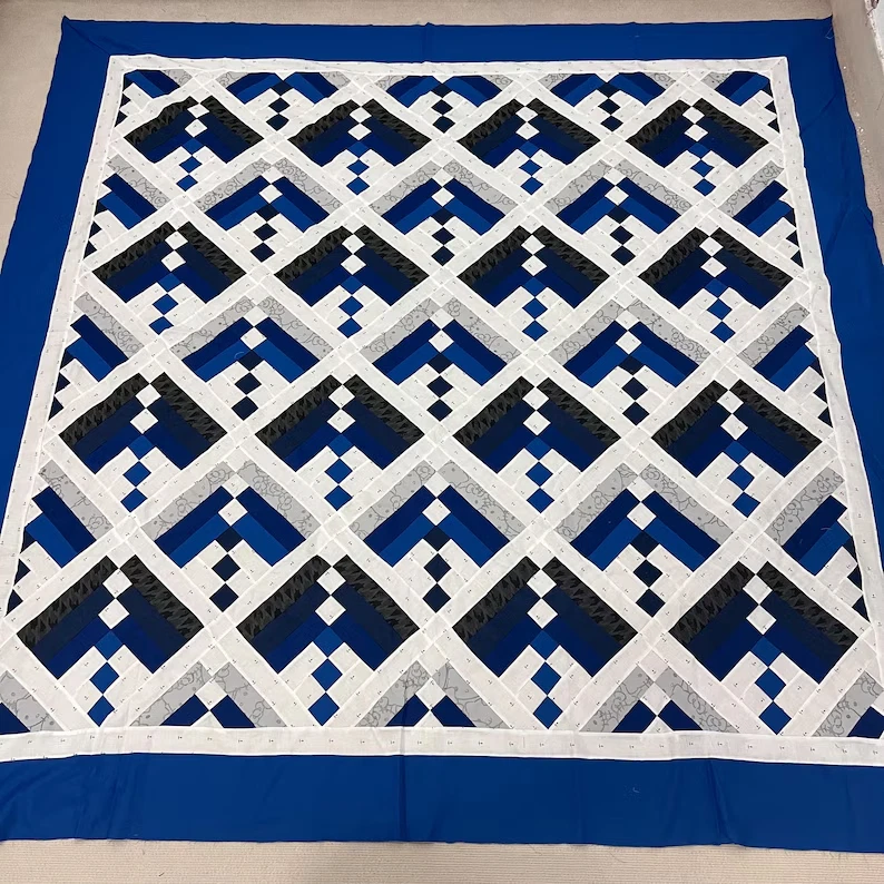 Log Cabin Blue Teardrops Handmade Patchwork quilt top/topper 86*86" This is not complete quilt , you need add batting and backing and do the quilting work. You can finish it as a quilt, as a shirt, as a skirt, anything within your creativity. This fun quilt topper has a variety of colors to go with. So classic. No Stains! Never been used. No prewash Measure: Around 86*86"