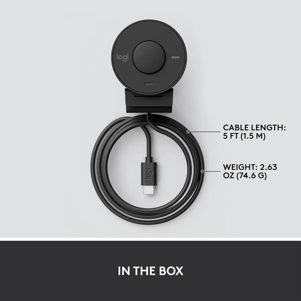Logitech Brio 301 Full HD Webcam with Privacy Shutter, Noise Reduction Microphone, USB-C, Certified for Zoom, Microsoft Teams, Google Meet, Auto Light Correction - Black Be Your Best Self on Every Video Call: Full HD 1080p webcam resolution provides natural image quality, so you look like the real you on all meeting apps Auto Light Correction: RightLight 2.5 technology automatically compensates for poor video lighting conditions so you can be seen clearly Sound Like You: The mono noise reduction mic suppresses background sound so everyone on the call can hear you easily Spin for Instant Privacy: Spin the webcam privacy shutter to block the camera lens when you donâ??t need to be on screen Made for Meetings: Brio Webcam 301 is compatible with most video conferencing platforms and certified for Zoom, Microsoft Teams and Google Meet Logi Tune: Enjoy the free app (1) (2) to customize your video experiences such as adjusting color and image quality Brio 301 is made with minimum 48% post-consumer recycled plastic for a better future (2) This product has been certified to meet Google's compatibility standards. Google is not responsible for the operation of this product or its compliance with safety requirements. Say hello to better video meetings. Place Brio 301 at your best angle for an eye-to-eye connection. Look natural thanks to 1080p resolution and auto light correction for low-light situations. A noise-reducing mic suppresses background noise so others can hear you clearly. Spin the easy-to-use privacy shutter to cover the lens between calls. Brio 301 is certified for Microsoft Teams, Google Meet, and Zoom, so you can enjoy hassle-free meetings. Add a dash of personality to your workspace with a modern shape and a subtly speckled design made from at least 48% recycled plastic. (3) (1) Download free Logi Tune for a customized experience. Logi Tune app currently supports headset voice prompts in the following languages: English, French, German, Italian, Spanish, and Portuguese. (2) Logi Tune not available for Chrome OS (3) Webcam plastic content may vary by color. Excludes Electronic (EE) Components, cables, and packaging. 62% for Graphite and Black, 48% for Off-white and Rose. (4) Bluetooth-enabled devices that support external keyboards Item model number 960-001441 Photo Sensor Technology CMOS Pattern Webcam Color Black Wireless Type Bluetooth Operating System Windows 10 or later, macOS 10.15 or later, ChromeOS Product Dimensions 1.78 x 2.09 x 2.58 inches Screen Size 2.5 Inches Manufacturer Logitech Video Capture Resolution 1080p Country of Origin China Max Screen Resolution 1920x1080 pixels Item Weight 2.63 ounces Connectivity Technology USB Maximum Focal Length 1 Standing screen display size 2.5 Inches Video Capture Format MPEG Item Dimensions LxWxH 1.78 x 2.09 x 2.58 inches Color Black Series brio Maximum Aperture 2.8 Millimeters Flash Memory Type SD Rear Webcam Resolution 2 MP Supported Audio Format MP3, AAC Brand Logitech Shipping Fast shipping is very important for us. Our standard US shipping service is FREE. Your order will be shipped within 2-3 business days upon full payment received. Your order will be delivered within 2-3 business days after the handling time. We only ship to the confirmed PayPal address. We reserve the right to cancel any order for any reason at any time. We are not responsible for undeliverable addresses. Returns and payment We offer a 30 days return policy from checkout winning date. We allow only PayPal as payment method FeedBack Your feedback very important to us, after you get your package and you are satisfied with our service please leave us positive feedback If you have any problem with your order / any questions please before leave any type of feedback For any questions, using eBay contact system Please visit our eBay store to check out other items for sale! Thank you for shopping at our store.