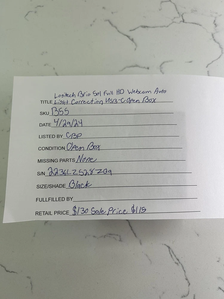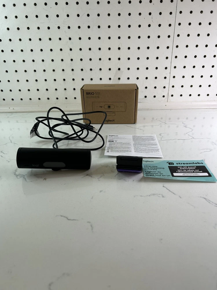 Logitech Brio 501 Full HD Webcam Auto Light Correction USB-C Open Box S/N: 2236LZ528ZQ9 Could not test this item. Inspected to the best of our abilities and seems to be in good condition. Enhance your video call experience with the Logitech Brio 501 Full HD Webcam. This top-of-the-line webcam boasts auto light correction and crystal-clear image quality, making it the perfect accessory for seamless communication. Its clip-on design allows for easy attachment to your laptop or desktop, while its USB-C connectivity ensures speedy data transfer. Don't settle for mediocre video calls - upgrade to the Logitech Brio 501 and take your virtual interactions to the next level.