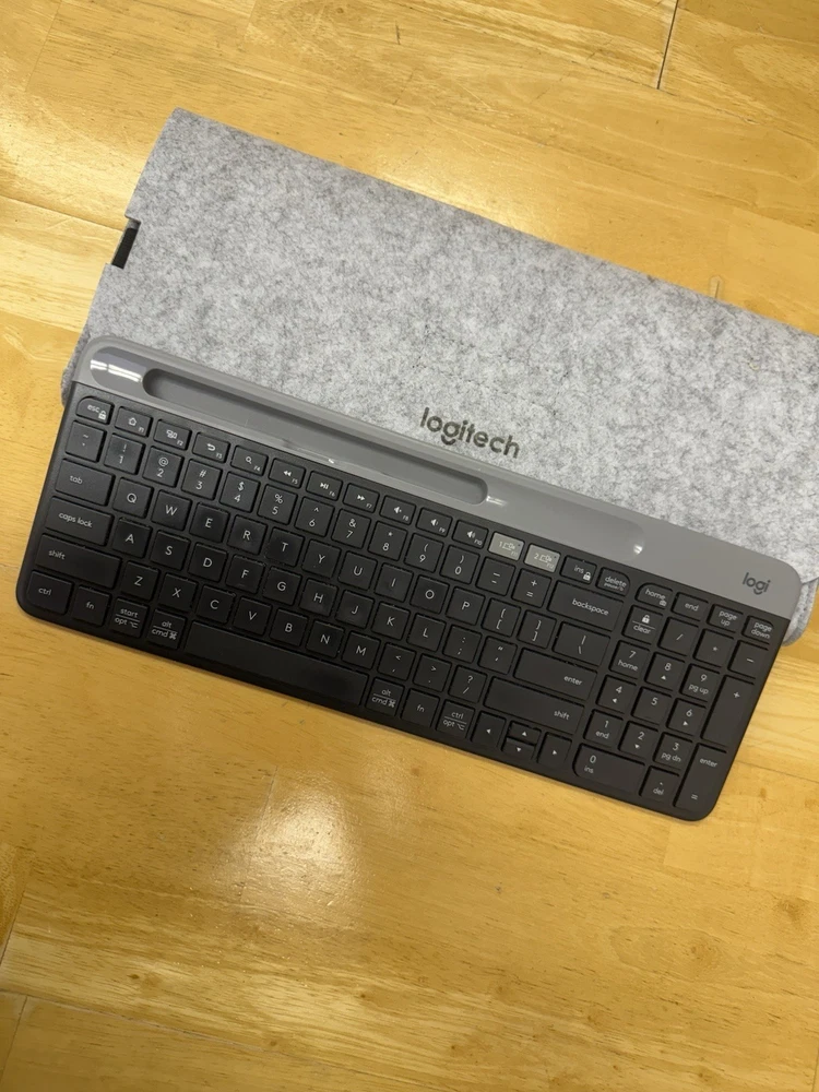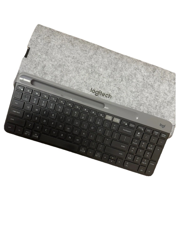 Selling a Logitech K580 Slim Wireless Keyboard in Space Black, perfect for multitasking between your computer and mobile devices. ✅ Excellent condition – barely used ✅ Comes with a sleek gray felt case (padded, with elastic closure – ideal for travel or storage) ✅ Works with Windows, Chrome OS, Android, and more ✅ Bluetooth + USB receiver (unifying dongle) Super slim, quiet, and modern – great for a clean desk setup or portable work use.