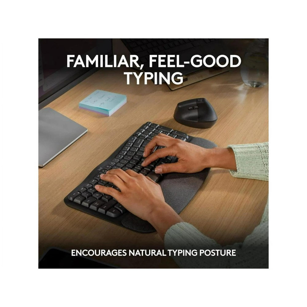 Logitech Wave Keys Wireless Ergonomic Keyboard with Cushioned Palm Rest DESCRIPTION Logitech Wave Keys Wireless Ergonomic Keyboard Windows, Mac, Android Enjoy enhanced typing comfort with the Wave Keys Wireless Ergonomic Keyboard from Logitech . Featuring a compact and wavy design with a built-in palm rest, this off-white colored wireless keyboard conforms to the natural position of your hands, wrists, and forearms to help keep you productive throughout the day. Its compact design helps to relieve shoulder stress by allowing you to keep your mouse closer to the center of your body. The included Logi Bolt USB-A wireless receiver may be simultaneously linked with the Wave Keys keyboard and a compatible mouse. Additionally, you can pair the keyboard with Bluetooth compatible laptops, tablets, and phones and switch between up to three devices at the touch of a button. Use the Logi Options+ App for Windows and macOS to enhance your workflow with custom shortcut keys. This wireless keyboard is designed work for up to three years with two AAA batteries. Feel the Wave Rest your hands, wrists, and upper body in a natural position as you type. With a curved keyframe design, Wave Keys feels instantly familiar and keeps you comfier for as long as you need. More Wrist Support, Less Pressure The soft cushioned palm rest includes three layers of textural foam that provides day long comfort by dispersing pressure. This keyboard also has built-in legs that provide a 4° tilt. Compact Keys The Wave Keys' compact frame allows you to bring your mouse closer to your body, placing your shoulder in a more natural position while using your mouse. A Personalized Workflow Customize your Wave Keys experience using the Logi Options+ App to save time and keep your work flowing. Easy Connection and Long Life Connect Wave Keys wireless ergonomic keyboard using Bluetooth wireless technology or the included Logi Bolt receiver. Enjoy up to 3 years' battery life with included AAA batteries. Multi-Device Switching The Wave Keys comes with a dual printed layout for Windows and Mac, and is multi-OS compatible. Quickly switch between your computer, tablet, or phone using the Easy-Switch keys. Sustainable Design The plastic parts in the Waves Keys keyboard include 46% certified post-consumer recycled plastic and is certified carbon neutral. Its paper packaging comes from FSC-certified forests and other controlled sources. ITEM SPECIFICS Brand: Logitech Type: Ergonomic Color: Graphite Item Height: 14.800 Model: Logitech Wave Keys Connectivity: Wireless, Bluetooth Features: Wrist Rest MPN: 920-011898 Item Length: 8.620 Item Width: 1.180 Keyboard Language: English PAYMENT Prompt payment is mandatory for all Buy It Now purchases. Accepted Payment Methods: Credit/Debit Cards: We accept major credit and debit cards including Visa, Mastercard, and Discover. Mobile Payments: Enjoy quick and secure payment options with Venmo, Apple Pay, and Google Pay. Online Payments: We also accept payments through PayPal, providing a reliable option for secure online transactions. SHIPPING Same-day shipping is available for orders placed before 3 PM, following payment completion. Buyers will receive a shipment notification with a tracking number. Orders made on weekends will ship on Monday. Items are shipped via USPS, FedEx, or UPS, depending on location and package weight. RETURN 30-Day Return Policy We want you to be completely satisfied with your purchase. If for any reason you are not happy with your item, you can return it within 30 days of receiving it for a full refund. ABOUT US We are a team of e-commerce experts who believe in making shopping a delightful experience. Our extensive knowledge of market trends and consumer preferences drives us to offer you a wide selection of products, from everyday essentials to unique finds, all sourced with care and attention to detail at prices you can truly afford. FEEDBACK Logitech Wave Keys Wireless Ergonomic Keyboard Windows, Mac, Android $36.95 Logitech - ERGO M575 Wireless Trackball Mouse Bluetooth & USB Connectivity $31.95 TP-Link AC1200 WiFi Router (Archer A54) - Dual Band Wireless Internet Router $24.95 Razer Basilisk V3 X HyperSpeed Customizable Wireless Gaming Mouse - Wireless $37.99 TP-Link EAP225-Outdoor | AC1200 Wireless Gigabit MU-MIMO Outdoor Access Point $43.95 Syba SI-PEX40137 8 Port Non-RAID SATA III PCI-e x4 Controller Card Dual SFF-8087 $89.95 SteelSeries - Aerox 5 Ultra Honeycomb Wireless RGB Gaming Mouse 18000 DPI *READ* $42.99 ARRIS SURFboard SBG7600AC2 DOCSIS 3.0 Cable Modem & AC2350 Wi-Fi Router $74.99 Add suggested items to your listings - Check it out on 3Dsellers.com