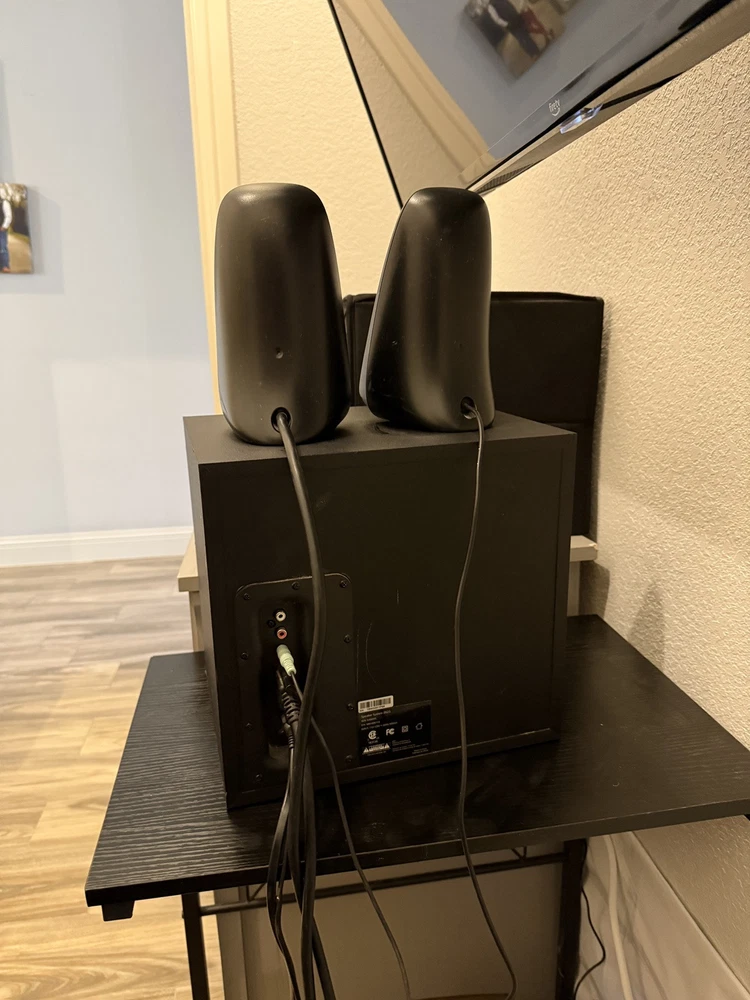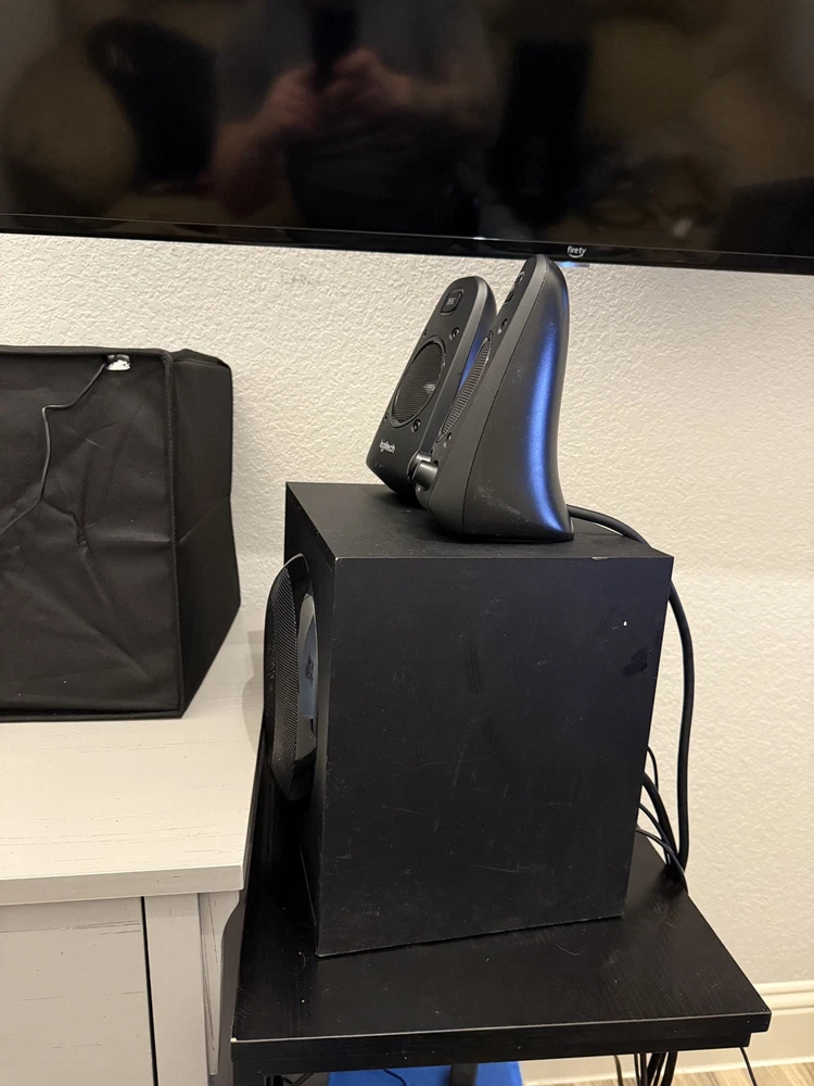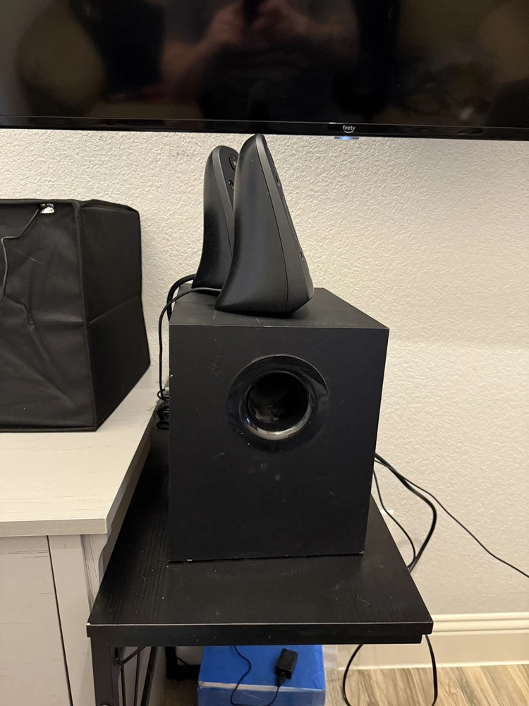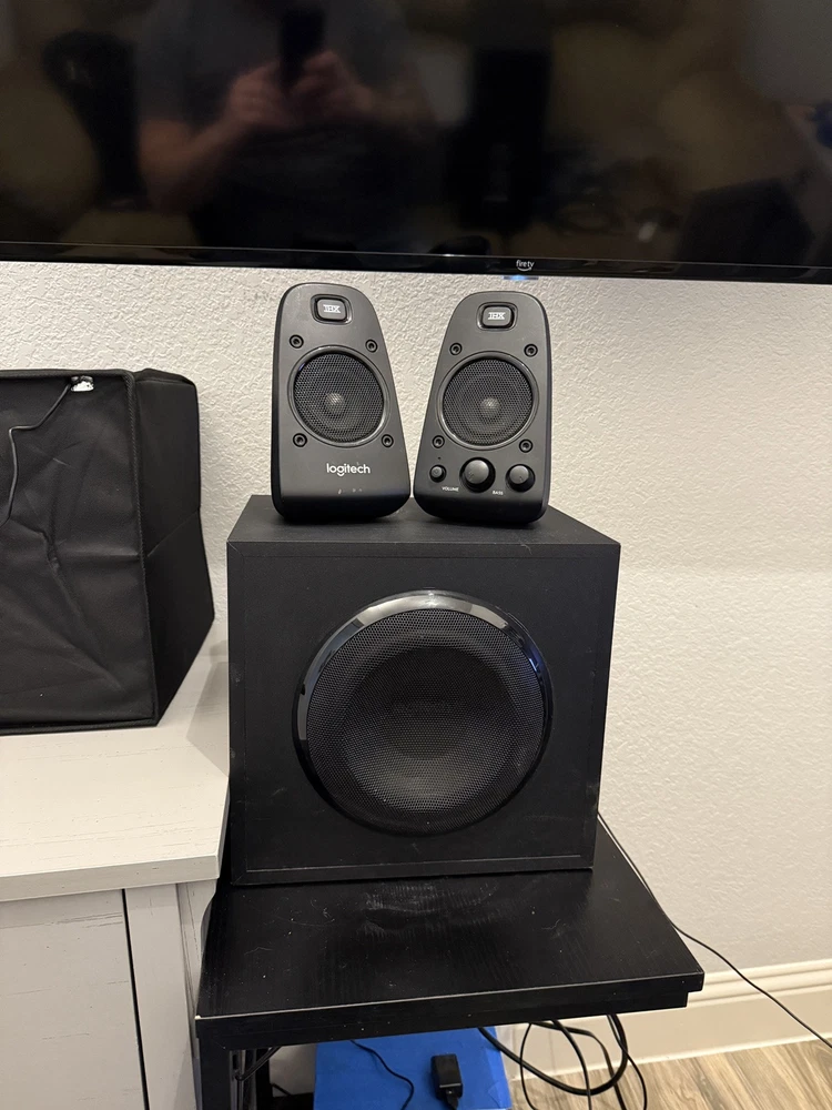 Logitech Z623 Computer Speakers with Loud Bass Sub-Woofer 2 Monitor Speakers. All cables included, works and sounds great, have not been used in over 3 years. I am cleaning out storage building after moving over 3 years ago and getting rid of all the stuff that I no longer use, priced to sell make me an offer. Refurbished price is $108 on Amazon, New price is $170 on Amazon, my price is $50 plus shipping, cheapest shipping from me is $13.05 highest shipping cost $29.08, so actual price is between $63 plus tax to $79 plus tax, these speakers are in exelent like new condition, worth $79 easily if you're looking for some awesome computer speakers, but make me an offer and let's make a deal.