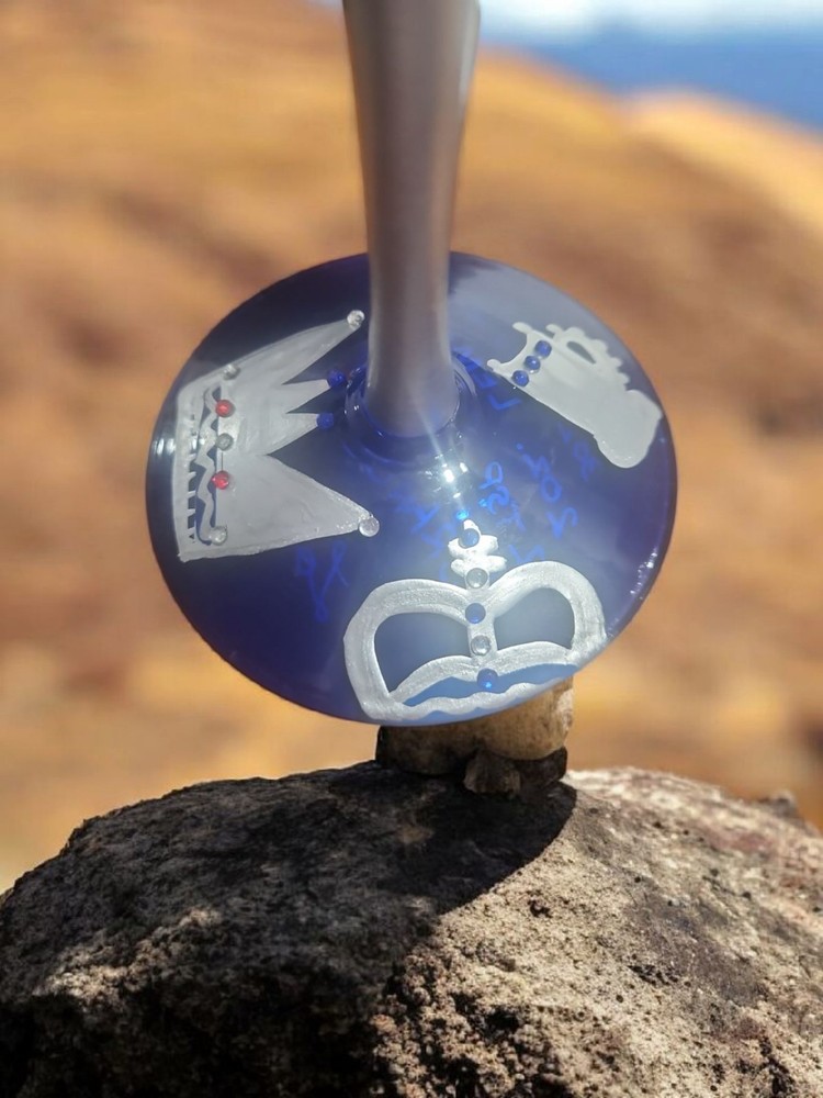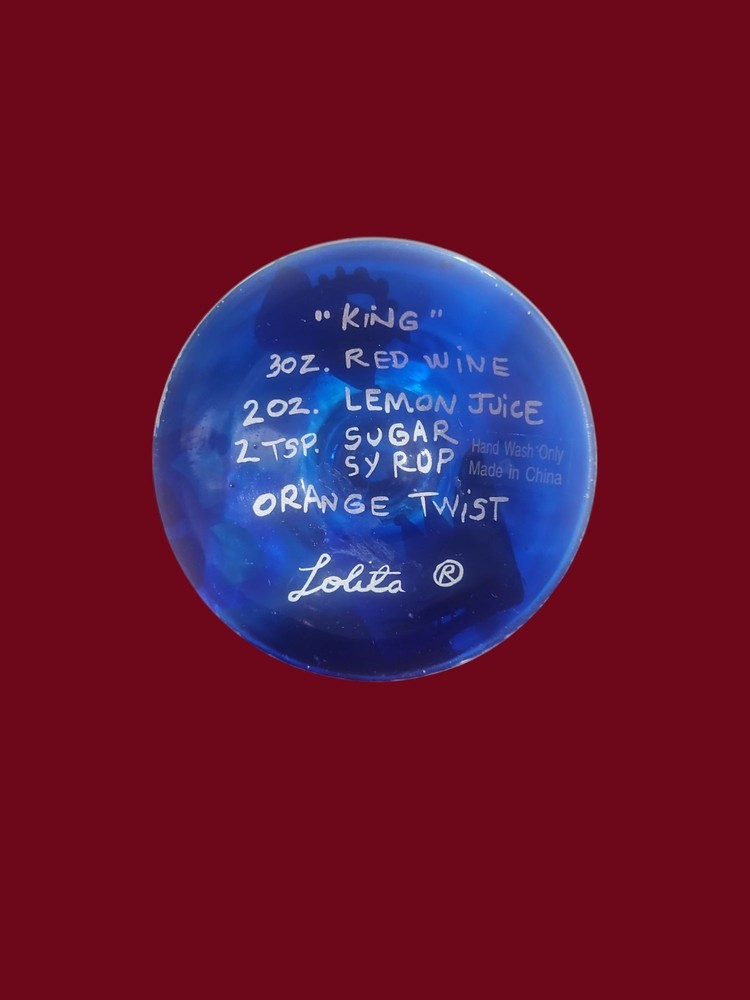 Lolita Hand Painted Wine Glass, “King” 5 Oz Recipe On Bottom . Condition is Used. Shipped with USPS Ground Advantage.