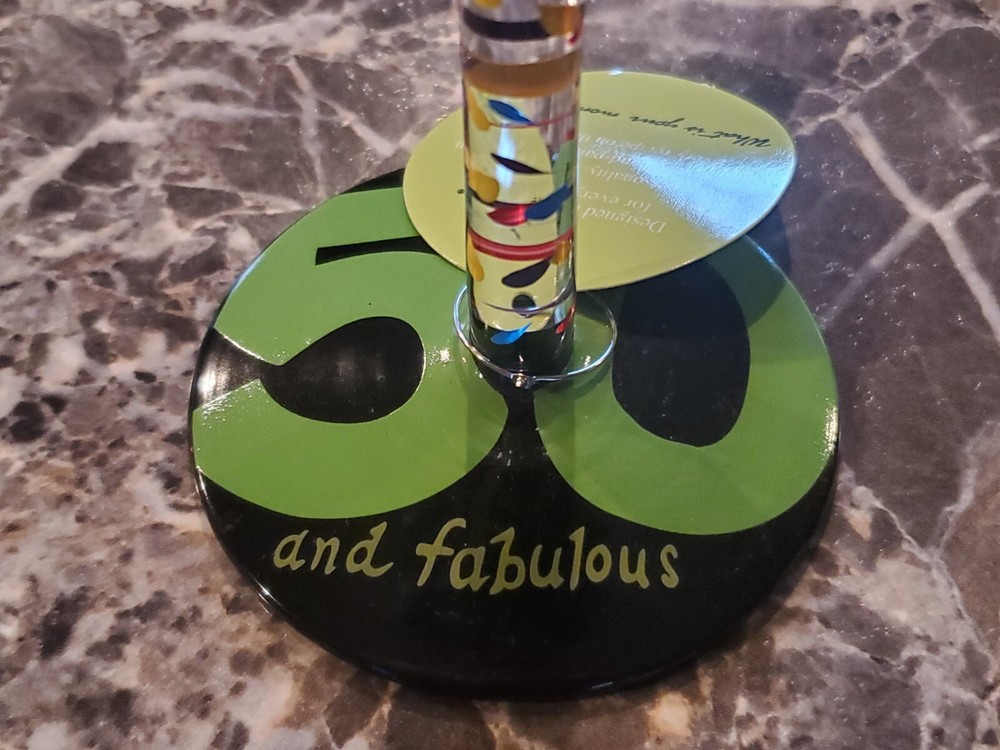 Lolita Love My Martini "50 and Fabulous" Hand-Painted Martini Glass NEW with Tag...this is brand new with tag still on it..received this for my 50th bday party & I never used it..beautiful hand painted martini glass..any questions be free to message me before buying..all orders are shipped within 24 hours after payment is received