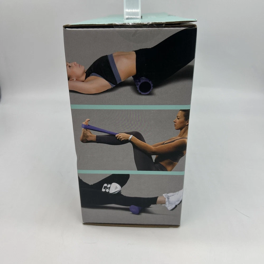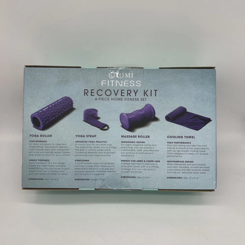 Lomi Fitness Recovery Kit 4-Piece Home Fitness Set New Purple Includes: yoga roller, yoga strap, message roller, & cooling towel