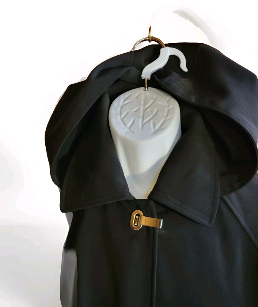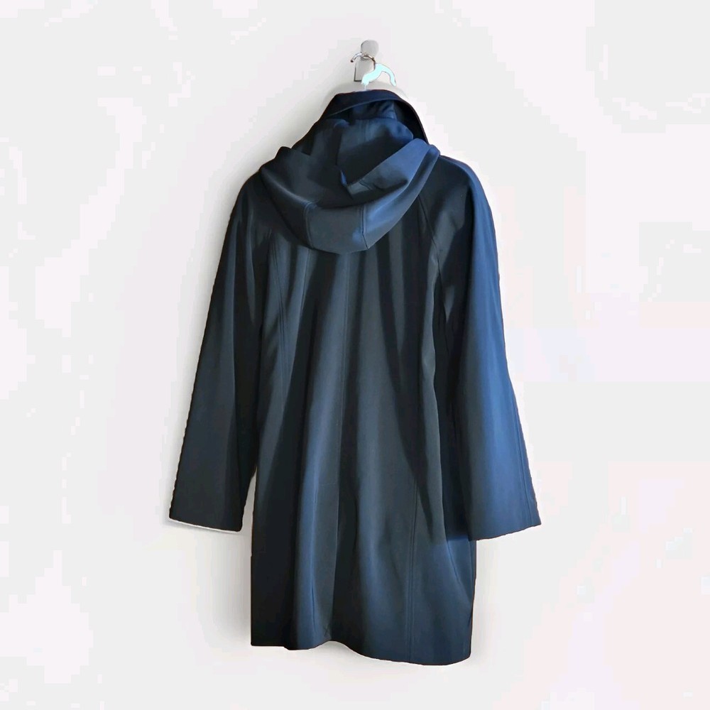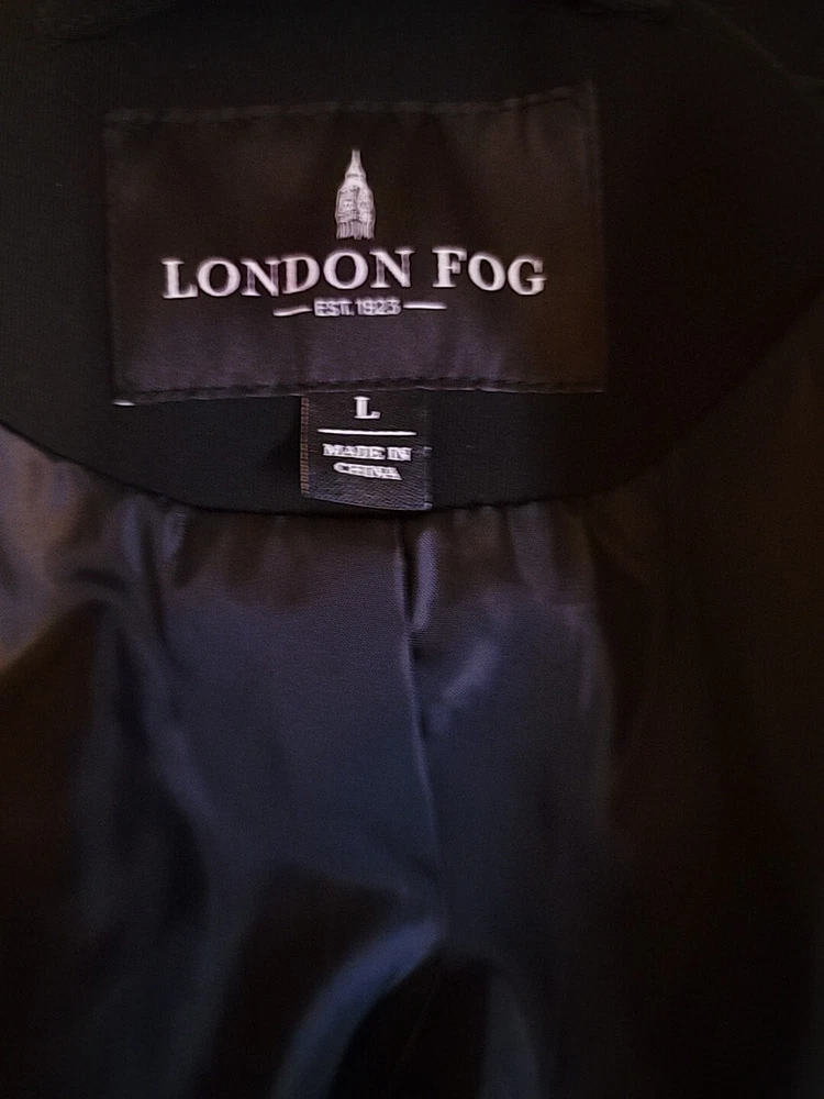 Elevate your fashion game with this stunning London Fog trench coat in black. Crafted with a sturdy polyester outer shell, this coat features a silver clasp front closure and a hood to complete the sleek look. The XL size is perfect for women who want to make a statement with their fashion choices. The coat is lined for added comfort and warmth, making it perfect for chilly weather. The metal theme of the coat adds a touch of edginess to any outfit, making it a versatile addition to your wardrobe. Whether you're heading out to a stylish night out or running errands, this coat is sure to turn heads.