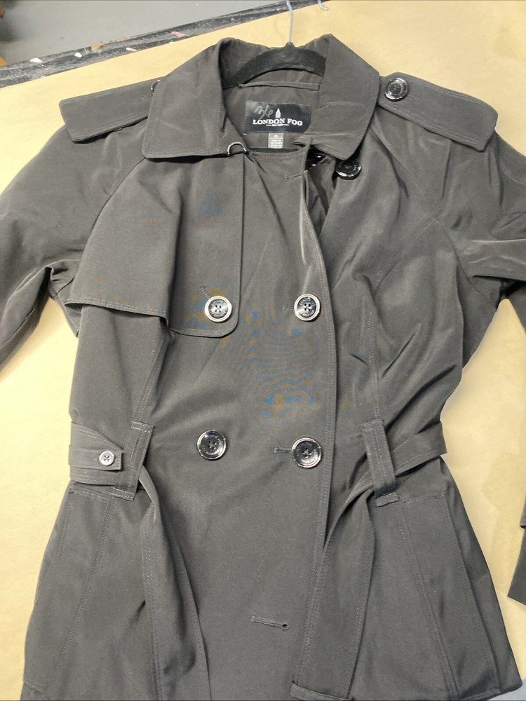 London Fog Women's Black Trench Coat Belted Size Petite Large