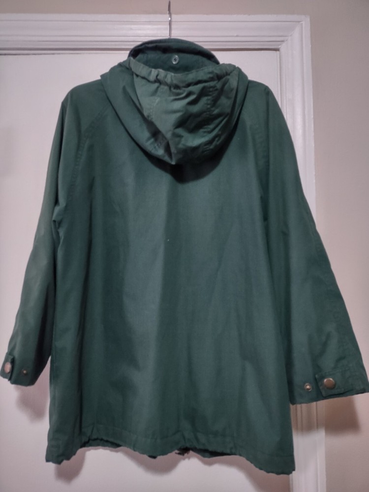 This London Fog jacket for women is the perfect addition to your wardrobe. Made with softshell fabric and lined with polyester, it is comfortable and durable. The mid-length coat features a zip closure and solid green color, making it a great choice for casual occasions. The jacket has pockets and is designed with a zipper accent, adding a touch of style to your outfit. This vintage piece is available in a petite size and is suitable for all seasons, including winter, summer, fall, and spring. Whether you're going out for a walk or running errands, this jacket will keep you warm and fashionable.