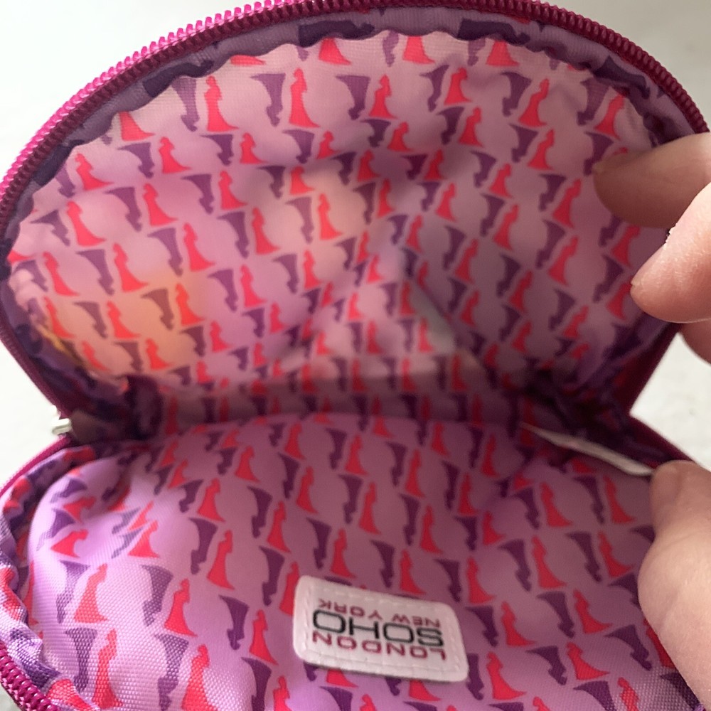 gtin13:N/ACountry of Origin:ChinaType:Makeup BagColor:PinkMaterial:Fabric and Plastic Type MaterialsFeatures:Zipper, Beautiful Artwork, Originally Sold for a Limited Time OnlyMPN:OooUPC:N/ABrand:London Soho New York