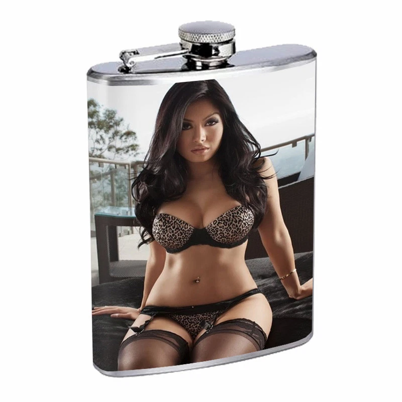 London UK Pin Up Girls D7 Flask 8oz Stainless Steel Hip Drinking Whiskey