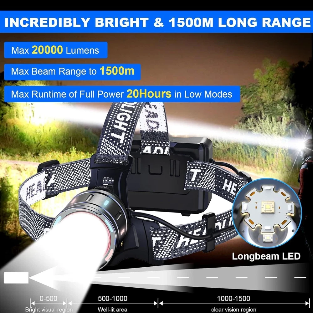 Long Beam Waterproof Headlamp - 1500m Range, Power Bank & 4 Modes Functionality ‹ › ‹ › ‹ › ‹ › ‹ › ‹ › ‹ › ‹ › ‹ › ‹ › Long Beam Waterproof Headlamp Unleash the power of advanced illumination with our exceptional Long Beam Waterproof Headlamp, designed for the adventurous spirit in you. Key Features: Super Bright Long Beam: Experience brilliance like never before with an incredible illumination range of up to 1500ft, thanks to the high-powered 20,000 lumen output and optical-grade double-convex lens. Rechargeable & Power Digital Display: Easily recharge via the USB Type C port in just 4 hours. Plus, utilize the headlamp as an emergency power bank to charge your phone or other devices. Long Runtime: Benefit from an impressive runtime of up to 20 hours in low mode, empowering your outdoor adventures without worry. 4+2 Light Modes & Motion Sensor: Customize your experience with multiple modes - high, low, strobe, SOS, and dual backlight modes. Control your lighting effortlessly with a simple wave of your hand when you activate the motion sensor feature. Zoomable & Adjustable: Easily adjust the headlamp's angle by 90° and zoom for spotlight or floodlight functionality, catering to all your lighting needs during camping, hiking, or emergency situations. IPX6 Waterproof & Durable: Built with a sturdy aluminum frame, our headlamp withstands harsh weather conditions and rough handling, ensuring it's always ready when you are. Why This Headlamp is Perfect for You: This headlamp is not just a tool; it’s an essential companion for the passionate adventurer. Whether you're camping under the stars, hiking in the dark, or navigating the depths of a forest, its superior brightness and functionality will illuminate your path. Dual-purpose as an emergency power bank, the headlamp combines convenience and practicality for outdoor enthusiasts. Compact, adjustable, and comfortable, the elastic headband ensures a secure fit, allowing you to move freely without hindrance. Its multi-use design makes it a valuable asset in various scenarios from fishing to professional tasks in dark spaces. Invest in your safety and experience unrivaled visibility – make it yours today! Shipping Free & Fast Shipping - We offer free shipping to most of the USA with a normal delivery time of 3-7 days. However, due to the current situation, additional delivery time (up to 3 weeks) may be required for some items. Alternative Carriers - We may use alternative carriers (e.g. USPS, FedEx, UPS, etc.) to ensure your package arrives safely and on time. Due to the use of multiple carriers, we are unable to provide a tracking number automatically. Handling Time - Orders are processed and shipped within 1-2 business days of receiving cleared payment. Shipping Restrictions - Shipping to Alaska, Hawaii, Puerto Rico, Guam, and other US territories may incur shipping charges or delivery restrictions. Please contact us before ordering, or your order can be refunded/cancelled. State Restrictions - There may be restrictions based on your state of purchase. For example, certain items may not be shipped to California due to state regulations. Contact for Tracking Updates - If you require tracking updates or have any concerns about the delivery of your order, please feel free to contact us, and we will be happy to assist you. Return 30-Day Hassle-Free Returns - We want you to be completely satisfied with your purchase. If you are not, you can return the item within 30 days of receiving it for a full refund or exchange. Easy Return Process - To start a return, simply contact us and we will provide you with a prepaid return shipping label and detailed instructions. Restocking Fee - There are no restocking fees for returns. However, the buyer is responsible for return shipping costs if the return is not due to a seller's error. Refund Processing Time - Refunds will be processed within 5 business days of receiving the returned item in its original condition. Payment We accept all major credit cards, PayPal, and Apple Pay for your convenience. Your payment information is secure and encrypted to ensure a safe and seamless transaction. Please complete your payment within 3 days of purchase to avoid any delays in shipping. Feedback Your feedback is extremely important to us. We strive to provide the best products and customer service possible. If you are satisfied with your purchase, please take a moment to leave us a positive review. If you have any concerns or issues with your order, please contact us before leaving negative feedback. We are committed to resolving any problems and ensuring your satisfaction. Contact Us If you have any questions or concerns, please feel free to reach out to our customer support team. You can contact us through the eBay messaging system. We are available Monday to Friday, 9:00 am to 5:00 pm EST, and we will do our best to respond to your inquiry within 24 hours. Thank you for supporting our small family business! UPC: Not Set Item Height: Not Set Item Length: Not Set Item Weight: 15.2 ounces Item Width: Not Set Voltage: 5 volts Model: Not Set Lumens: 20000 Number of LEDs: 1 Unit Quantity: 1 Material: Aluminum Features: Rechargeable,Waterproof,Power Bank,Motion Sensor Brand: Unbranded Type: Headlamp MPN: Not Set Operating Range: 1500 meters Power Source: USB IP Rating: IPX6 Color: Black Battery Technology: Li-Ion Country/Region of Manufacture: Not Set Lighting Technology: LED Number of Batteries: 3 Number of Lights: 1-3 Operating Time: More Than 10 Hours Unit Type: oz
