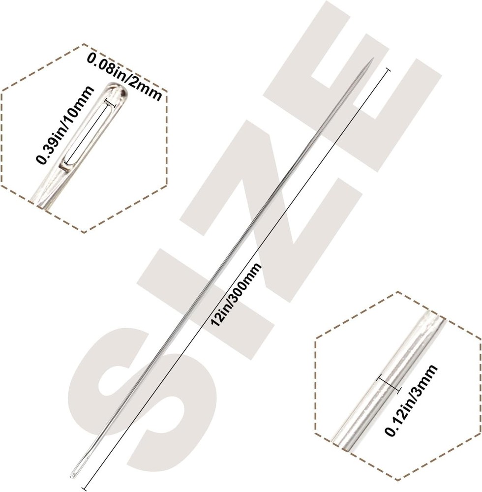 Long Carbon Steel Sewing Needles Set - Ideal for Upholstery and Leather Projects ‹ › ‹ › ‹ › ‹ › ‹ › ‹ › ‹ › ‹ › ‹ › Long Carbon Steel Sewing Needles Set Your Ultimate Companion for Upholstery and Leather Projects Value for Money: Includes two 12-inch long sewing needles (3-mm diameter). Complimentary 2.75-inch large eye needle (2-mm diameter) for versatile use. 1 storage tube included for convenient organization. Versatile Use: Perfect for upholstery and home furniture restoration. Ideal for various arts and crafts projects: webbing, carpet, sofas, leather, sacks, and canvas repair stitching. Also great for doll making and more creative pursuits. Large Eye Design: Featuring a large needle eye (approx. 0.39 x 0.08 inches). Easily thread even the thickest lift cords with minimal effort. High Quality: Constructed from high-strength carbon steel, ensuring durability and longevity. Advanced Japanese plating process guarantees a rust and corrosion-resistant finish. Smooth surface and pointed tips facilitate effortless stitching through fabrics. Choice for Gift: This professional upholstery needle kit makes an excellent gift for sewing enthusiasts. Perfect for friends, relatives, colleagues, or anyone with a passion for crafting. Why Choose Our Sewing Needles? With over seventy of expertise in needle manufacturing, we pride ourselves on delivering high-quality products that meet the diverse needs of our customers. Our advanced technology and dedication to excellence ensure you receive sewing needles that are not only functional but also exquisite in design. Don’t compromise on your sewing projects; elevate your craftsmanship with our Long Carbon Steel Sewing Needles Set. Order yours today and experience the joy of seamless sewing! Shipping Free & Fast Shipping - We offer free shipping to most of the USA with a normal delivery time of 3-7 days. However, due to the current situation, additional delivery time (up to 3 weeks) may be required for some items. Alternative Carriers - We may use alternative carriers (e.g. USPS, FedEx, UPS, etc.) to ensure your package arrives safely and on time. Due to the use of multiple carriers, we are unable to provide a tracking number automatically. Handling Time - Orders are processed and shipped within 1-2 business days of receiving cleared payment. Shipping Restrictions - Shipping to Alaska, Hawaii, Puerto Rico, Guam, and other US territories may incur shipping charges or delivery restrictions. Please contact us before ordering, or your order can be refunded/cancelled. State Restrictions - There may be restrictions based on your state of purchase. For example, certain items may not be shipped to California due to state regulations. Contact for Tracking Updates - If you require tracking updates or have any concerns about the delivery of your order, please feel free to contact us, and we will be happy to assist you. Return 30-Day Hassle-Free Returns - We want you to be completely satisfied with your purchase. If you are not, you can return the item within 30 days of receiving it for a full refund or exchange. Easy Return Process - To start a return, simply contact us and we will provide you with a prepaid return shipping label and detailed instructions. Restocking Fee - There are no restocking fees for returns. However, the buyer is responsible for return shipping costs if the return is not due to a seller's error. Refund Processing Time - Refunds will be processed within 5 business days of receiving the returned item in its condition. Payment We accept all major credit cards, PayPal, and Apple Pay for your convenience. Your payment information is secure and encrypted to ensure a safe and seamless transaction. Please complete your payment within 3 days of purchase to avoid any delays in shipping. Feedback Your feedback is extremely important to us. We strive to provide the best products and customer service possible. If you are satisfied with your purchase, please take a moment to leave us a positive review. If you have any concerns or issues with your order, please contact us before leaving negative feedback. We are committed to resolving any problems and ensuring your satisfaction. Contact Us If you have any questions or concerns, please feel free to out to our customer support team. You can contact us through the eBay messaging system. We are available Monday to Friday, 9:00 am to 5:00 pm EST, and we will do our best to respond to your inquiry within 24 hours. Buy it now and enjoy a pleasant shopping experience! MPN: Upholstery_Needles Unit Quantity: 2 PCS Type: Upholstery Needle Eye Shape: Large Size: 12 Tip Type: Sharp
