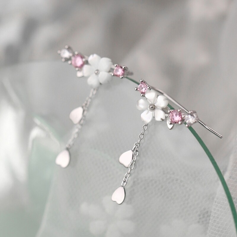Features: Elegant flower wrap earrings with threader tassel chain, inlaid with high zircon, unique and fashion jewelry for female. birthday cocktail party holiday anniversary wedding lovers girlfriends or yourself. high It is not allergic for your skin. Cherry flower dangle gracefully, adding that for extra of charm to any look.Suits with any dress. formal, casual, fashion, trendy or vintage. It just can pair with any outfit perfectly. Specifications: Size: Approx.29x22mm/1.14x0.87inch Package Includes: 1 Pair of Earrings note: Please allow 1-2cm errors due to manual measurement,pls make sure that you do not mind before you order. Due to the difference between different monitors, the picture may not reflect the actual color of the item.