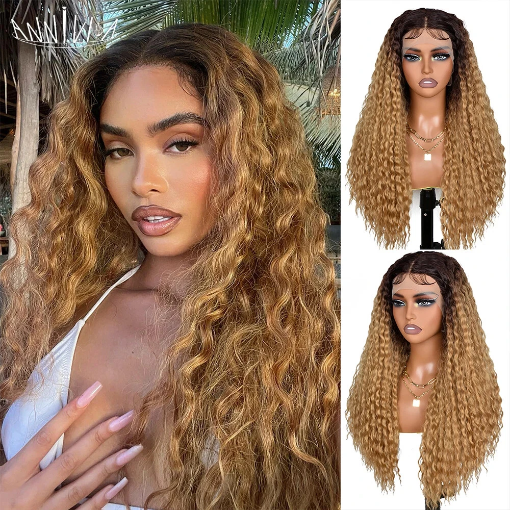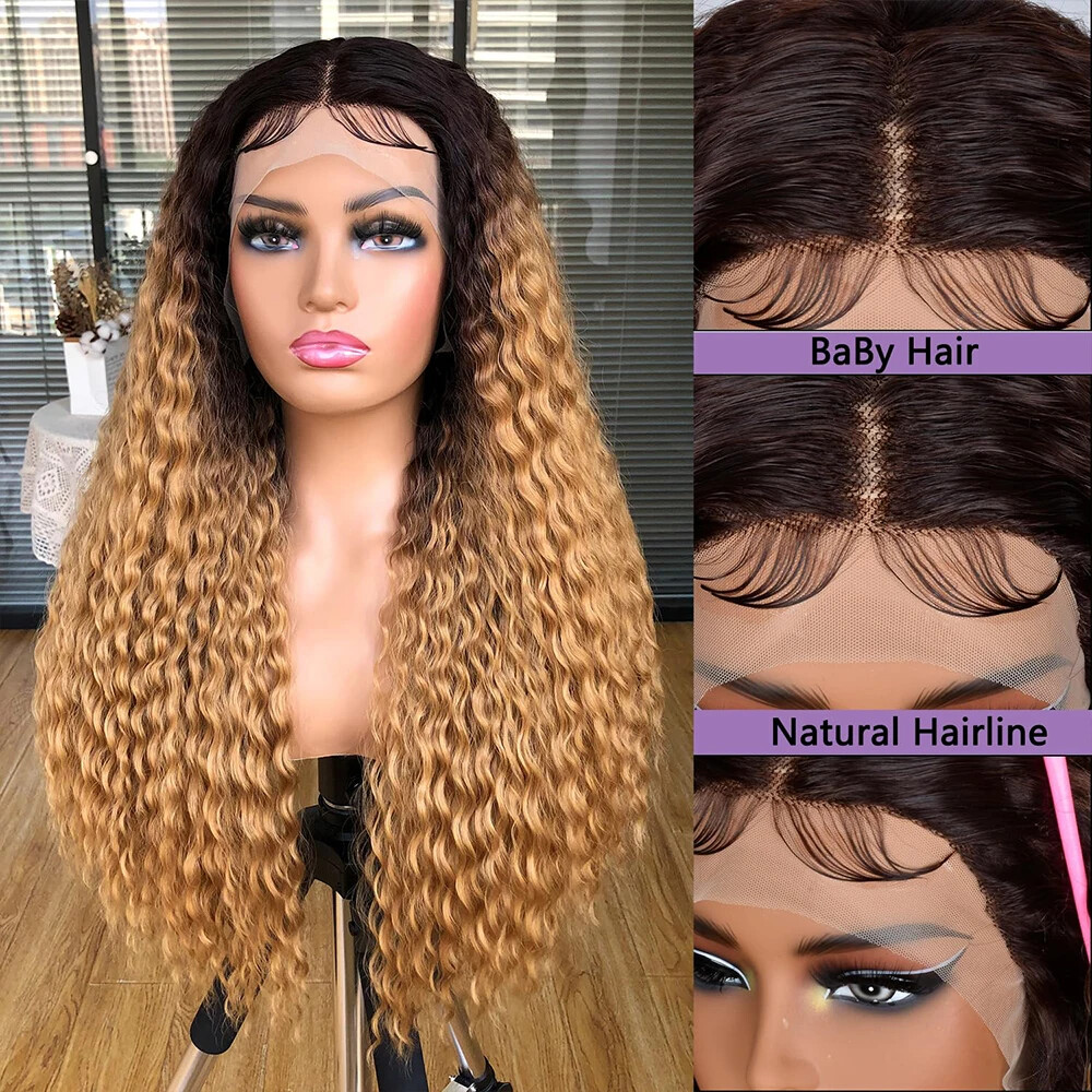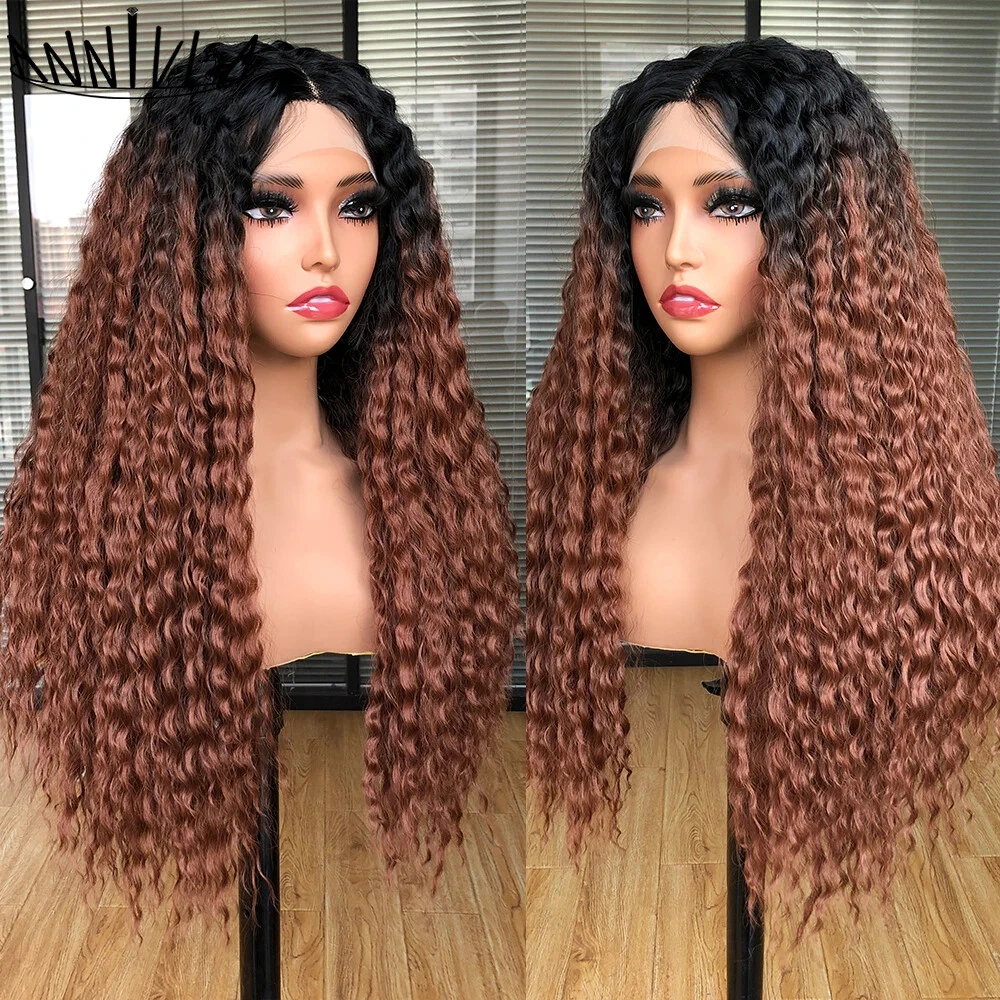 $ 11.09Soft Ombre Brown Kinky Straight 180 Density Lace Front Wig with Baby Hair