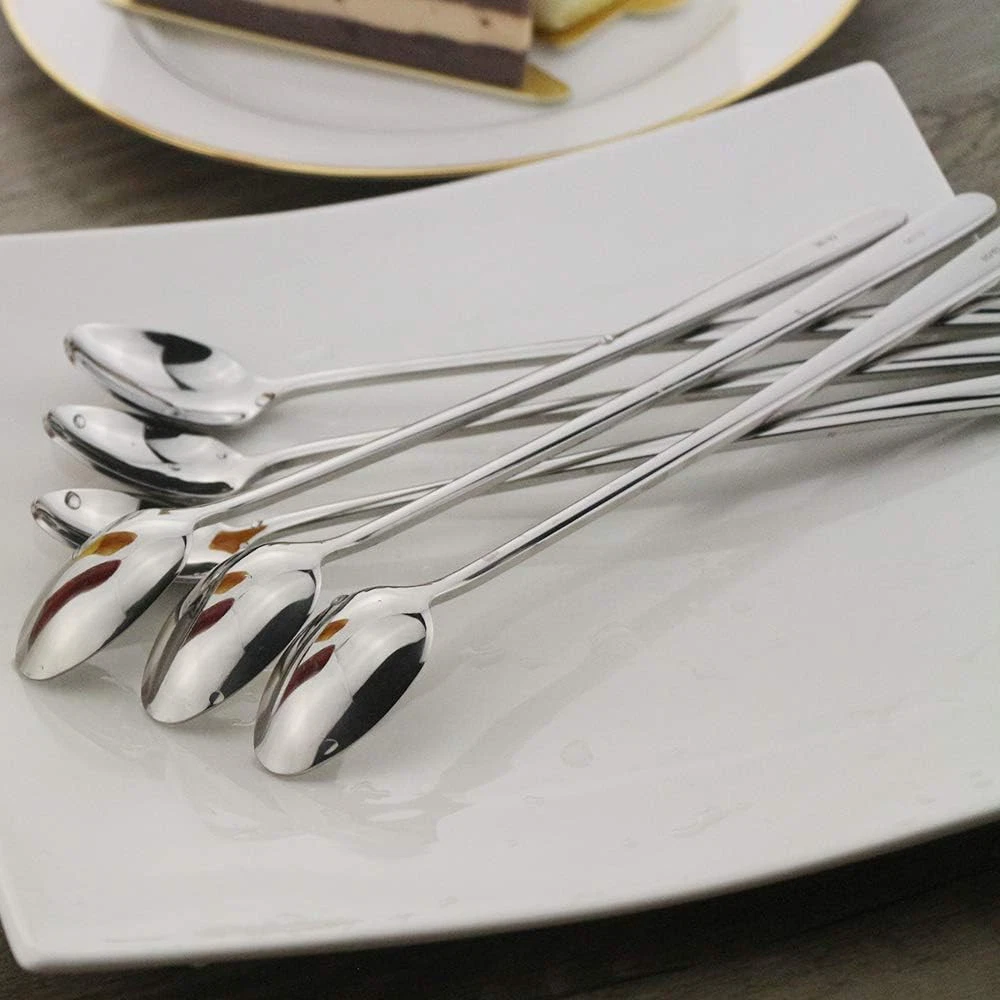 Long Handle Spoon, 9-inch Ice Tea DEALIGHT Premium 18/10 Silver Product Details Item Weight: 0.1 Pounds Number of Pieces: 6 Is Dishwasher Safe: Yes Product Dimensions: 10 x 5.79 x 1.42 inches Item Weight: 1.6 ounces Manufacturer: DEALIGHT Country of Origin: China Item model number: DL-LP-1 Long Handle Spoon Is Discontinued By Manufacturer: No Color: Silver Material: Stainless Steel Brand: DEALIGHT Style: Tableware Product Dimensions: 10"L x 5.79"W ✓ PREMIUM QUALITY: Our Long Handle Spoon Crafted from high-class 18/10 (304) Stainless Steel, Very Sturdy, Strong for scooping ice cream, frozen yogurt desserts, tall parfait sundae glasses, and Good Quality will Last for years. ✓ EXTRA LONG SPOONS: 220 mm ( about 9 inch ) for total length, perfect for most glasses and pitchers, Also used as ice cream spoons, ice teaspoons, coffee mixing spoons, cocktail stirring spoons. And Long enough for tall coffee mugs. Suitable for bar, home, party use. ✓ LIFE STYLE: Luxurious and Stylish Design with Ergonomic Feel, Superior Quality Mirror Finished Surface, Smooth Edge definitely no rough spot. Enjoy your Leisure times in this summer! ✓ SET OF 6: Total Length: 220mm / about 9 inch; Handle length: 180 mm / 7 inch, Weight: 1.6 oz/pcs (9.6 oz/6 pcs). Dishwasher - safe, easy to clean. ✓ What You Get: 6 Pack Iced Tea Spoon, Giftbox Packaging, perfect for your family or as a gift DEALIGHT 9-inch Long Handle Spoon Set of 6, used as ice cream spoons, ice teaspoons, coffee mixing spoons, cocktail stirring spoons, Suitable for bar, home, party use. They are Crafted from high-class (304) 18/10 stainless steel and heavily constructed. Superb durability and corrosion resistance. With its elongated streamlined handle, perfect for most glasses and pitchers, Also use for mixing drinks, coffee, tea. And Long enough for tall coffee mugs. Suitable for bar, home, party use. Enjoy your Leisure times in this summer!