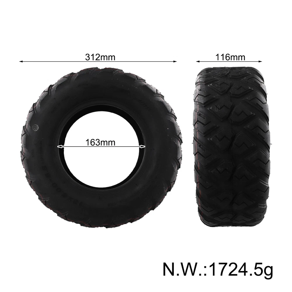 Long lasting Rubber 13 Inch Tubeless Tyre for Electric Scooter Karting DESCRIPTION : It is illegal to ride electric scooters on public roads, pavements, or cycle paths. They are intended only for use on private land with the owner's permission Features: *Brand new and high quality *Made of high quality material, and practical to use *13 inch 13x5.00-6.5 Off-road Tubeless Tyre, excellent replacement applications that use same tire size Specifications: *Product Name:13 Inch 13x5.00-6.5 Tubeless Tyre *Material:Rubber *Size:312*116mm *Color:Black *Weight: about 1725g Package Content: 1 x Tubeless tire Note: 1. The real color of the item may be slightly different from the pictures shown on website caused by many factors such as brightness of your monitor and light brightness. 2. Please allow slight manual measurement deviation for the data. POLICES Shipping Payment WARRANTY We only ship to confirmed ebay Order addresses. Please comfirm that your Order address is in line with your shipping address. Please kindly note that the c ombined shipping is not provided because the shipping fee is calculated by weight. Also, the each additional item means exactly the the same color and size. It takes about 7 -15 working days to US; about 10-30 working days to other countries. Transit time may be a little delayed because of the bad weather and customs inspection . If you do not receive your item within 30 working days since payment finished, please contact us immediately for further assistance. Payment must be completed within 5 days. If you have any problems about payment, please contact us via ebay message. We strive for 100% customer satisfaction! Positive Feedback is very important to us. If you have any questions, p lease feel free to contact us via "Ask seller a question" . We will reply your email within 24 working hours. On Jan 2, 2025 at 07:48:59 PST, seller added the following information: