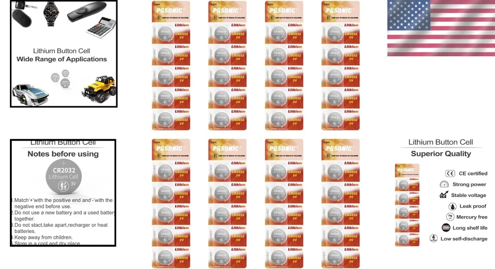 Long-Lasting 40 Pack Lithium Coin Batteries for Reliable Device Performance ‹ › ‹ › ‹ › ‹ › ‹ › ‹ › Long-Lasting 40 Pack Lithium Coin Batteries Experience reliable and powerful performance for your devices with our premium Lithium Coin Batteries. Designed to enhance the functionality of your gadgets, these batteries are your go-to solution for consistent energy needs. Key Features: High Capacity: Each battery offers a robust 240 mAh, providing 30% more power compared to conventional button cells. Premium Quality: Fresh batteries ensure stable voltage at 3V, giving you long-lasting usage with a remarkable 5-year shelf-life. Safe & Sustainable: Designed without mercury and featuring leak-proof technology, our batteries follow the highest manufacturing standards for safety and sustainability. Wide Compatibility: Perfect for an array of devices including remote controls, car/key fobs, lights, scales, security alarms, calculators, watches, toys, and medical devices. Versatile Fit: Compatible with devices utilizing 2032, BR2032, BP, DJ2032, DL2032, EA2032C, E, E-, K, LM2032, and many more. Why Choose Our Lithium Coin Batteries? Invest in long-lasting energy with our 40-pack Lithium Coin Batteries, carefully crafted to ensure your devices function optimally. Each battery is individually packaged for safety and convenience, making them easy to store and ideal for both personal and professional use. Our commitment to quality means you can confidently power your devices knowing they will perform at their best. With a shelf life of up to 5 years under proper storage conditions, our batteries are ready when you need them. Join the ranks of satisfied customers who trust our Lithium Coin Batteries for their reliable performance. Order your 40 Pack today and never worry about running out of power! Shipping Free & Fast Shipping - We offer free shipping to most of the USA with a normal delivery time of 3-7 days. However, due to the current situation, additional delivery time (up to 3 weeks) may be required for some items. Alternative Carriers - We may use alternative carriers (e.g. USPS, FedEx, UPS, etc.) to ensure your package arrives safely and on time. Due to the use of multiple carriers, we are unable to provide a tracking number automatically. Handling Time - Orders are processed and shipped within 1-2 business days of receiving cleared payment. Shipping Restrictions - Shipping to Alaska, Hawaii, Puerto Rico, Guam, and other US territories may incur shipping charges or delivery restrictions. Please contact us before ordering, or your order can be refunded/cancelled. State Restrictions - There may be restrictions based on your state of purchase. For example, certain items may not be shipped to California due to state regulations. Contact for Tracking Updates - If you require tracking updates or have any concerns about the delivery of your order, please feel free to contact us, and we will be happy to assist you. Return 30-Day Hassle-Free Returns - We want you to be completely satisfied with your purchase. If you are not, you can return the item within 30 days of receiving it for a full refund or exchange. Easy Return Process - To start a return, simply contact us and we will provide you with a prepaid return shipping label and detailed instructions. Restocking Fee - There are no restocking fees for returns. However, the buyer is responsible for return shipping costs if the return is not due to a seller's error. Refund Processing Time - Refunds will be processed within 5 business days of receiving the returned item in its original condition. Payment We accept all major credit cards, PayPal, and Apple Pay for your convenience. Your payment information is secure and encrypted to ensure a safe and seamless transaction. Please complete your payment within 3 days of purchase to avoid any delays in shipping. Feedback Your feedback is extremely important to us. We strive to provide the best products and customer service possible. If you are satisfied with your purchase, please take a moment to leave us a positive review. If you have any concerns or issues with your order, please contact us before leaving negative feedback. We are committed to resolving any problems and ensuring your satisfaction. Contact Us If you have any questions or concerns, please feel free to reach out to our customer support team. You can contact us through the eBay messaging system. We are available Monday to Friday, 9:00 am to 5:00 pm EST, and we will do our best to respond to your inquiry within 24 hours. Buy it now and enjoy a pleasant shopping experience! UPC: Not Set Unit Quantity: 40 Expiration Date: 5 years after manufacture Application: Low Drain Devices,Remote controls,Car/key fobs,Lights,Weight/kitchen scales,Security alarms/cameras,Calculators,Watches,Toys,Medical devices (heart rate monitors) Brand: Unbranded Type: Coin Cell/Button Battery Size: CR2032 Chemical Composition: Lithium Voltage: 3 V Amp Hours: 240 mAh MPN: Not Set Unit Type: oz Country/Region of Manufacture: Not Set Manufacturer Warranty: Not Set