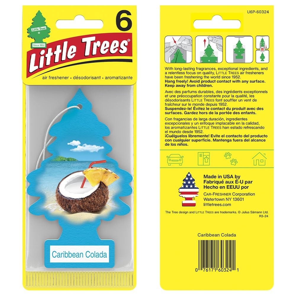 Car Air Freshener I Hanging Tree Provides Long Lasting Scent for Auto or Home I Caribbean Colada, 24 Count, (4) 6-Packs Caribbean Colada is an escape to a tropical island with juicy pineapple and sweet coconut. THE ORIGINAL CAR AIR FRESHENER: is the original car air freshener that freshens at home and on the road. LONG-LASTING FRAGRANCE EXPERIENCE: Specialized proprietary technologies combined with exceptional fragrances deliver long-lasting quality results. MORE THAN JUST A CAR AIR FRESHENER: Freshen up at home or on the road with the original car air freshener. Great to use in laundry rooms, garages, bathrooms, and pet odor areas. FRESHEN YOUR LIFE: air fresheners come in a wide range of product styles and fragrances, making it easy to find one you love! MADE IN THE USA: Rigorous testing and high quality standards ensures a premium fragrance experience made from only the best ingredients. CAR-FRESHNER CORPORATION strives to create and the best car air fresheners for both consumers and the environment. All fragrances meet or exceed the International Fragrance Association guidelines as well as our stringent internal safety standards. Shipping We offer FREE shipping on all orders! We ship within Three business days of payment, usually sooner. We use a selection of shipping services such as UPS, FedEx, USPS etc. We only ship to the lower 48 states, no APO/FPO addresses or PO Boxes allowed. Local pickups and combined shipping options are not provided at this time. Return You can return a product for up to 30 days from the date you purchased it. Any product you return must be in the same condition you received it and in the original packaging. Please keep the receipt. Payment We accept payment by any of the following methods: PayPal Please pay as soon as possible after winning an auction, as that will allow us to post your item to you sooner! Feedback Customer satisfaction is very important to us. If you have any problem with your order, please contact us and we will do our best to make you satisfied. Contact Us If you have any queries, please contact us via ebay. We usually respond within 24 hours on weekdays. Please visit our eBay store to check out other items for sale! Thank you for shopping at our store.