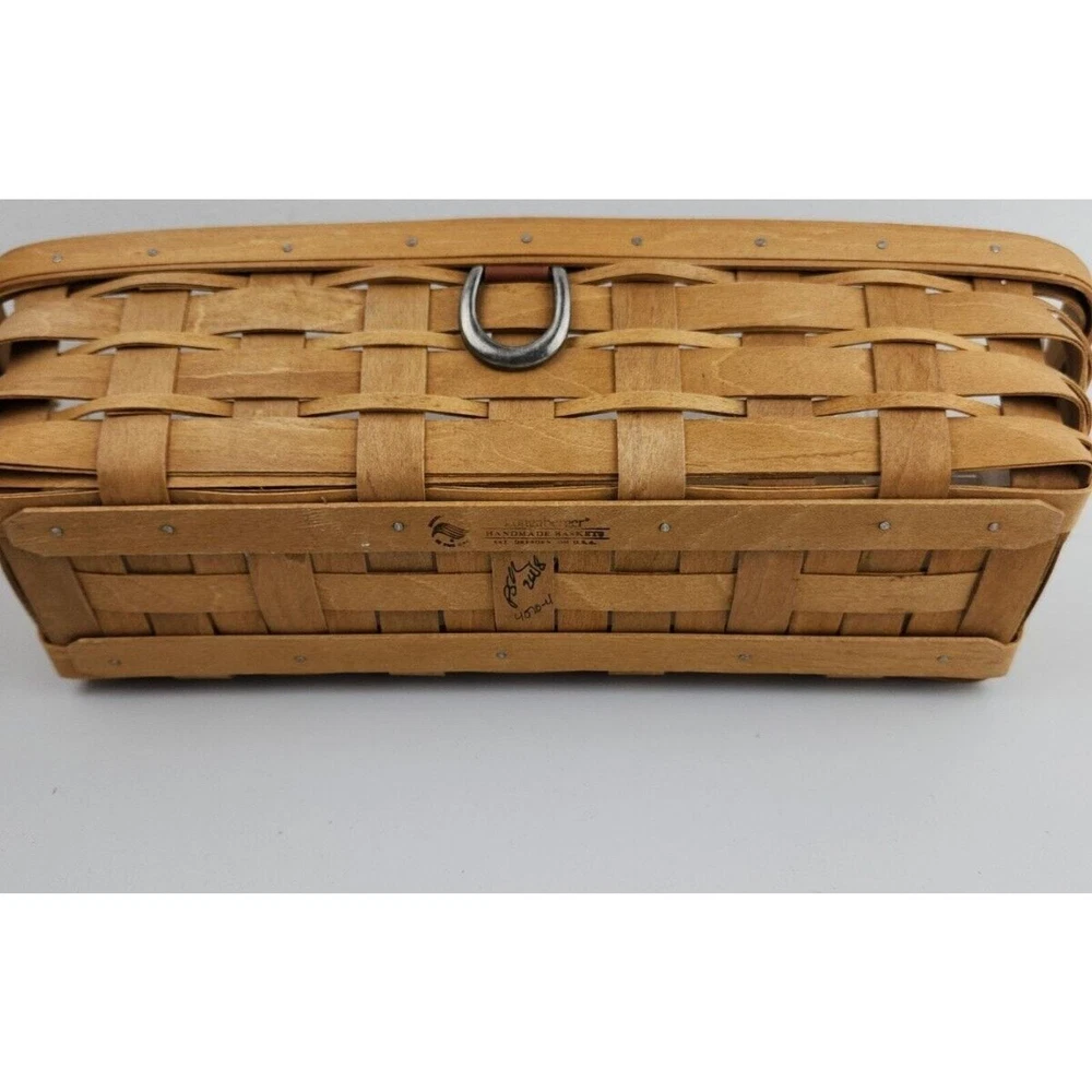 This Longaberger basket is a perfect addition to any country-themed decor. Made of high-quality wood and manufactured in the United States in 2006, this small, rectangular basket is perfect for sorting and storing mail and bills. The warm brown color adds a touch of coziness to any room, and the included protector ensures that your items stay safe and secure. Ideal for all occasions, this Longaberger basket is a must-have for any collector or decorator looking for a rustic touch.