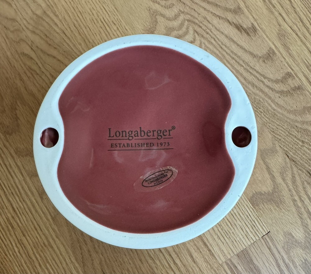 Pattern: Woven Material: Ceramic Subject: Candles Type: Candle Holder Number in Pack: 2 Item Weight: 12 oz Each Color: Red Original/Reproduction: Original Department: Adults Item Length: 5 in Brand: Longaberger Shape: Round Size: 5 Inches Tall Style: Traditional Finish: Glossy