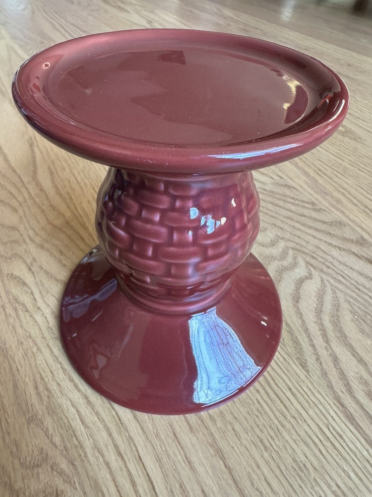 Longaberger Pottery Pillar Candle Holder s Paprika Red Burgundy 5" set of 2 Like new condition. No chips or cracks. Separately, I have the 2 quart pitcher from this set. Inquire if interested or search for my other listing. Ships from the Midwest.