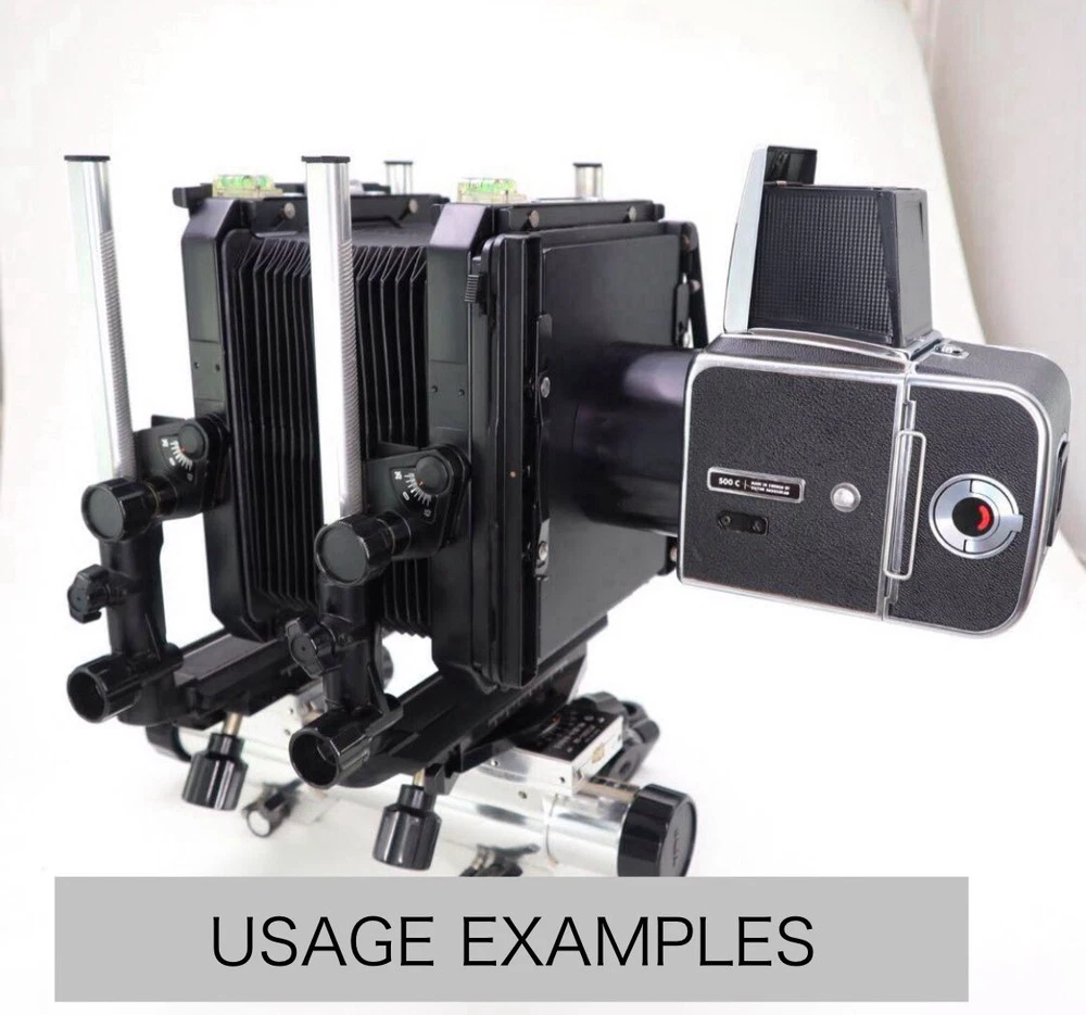 *Look* 4X5 Large Format Camera Adapter Board for HASSELBLAD V From Japan #R9-15 Description This adapter board allows you to attach a Hasselblad V series to a 4X5 inch technical camera or view camera and shoot with it. This is a very useful and rare item that allows you to add your large format lenses to a Hasselblad. It is very sturdy and has a sense of precision, and is in good condition with little signs of use. The product does not have the HASSELBLAD marking, so it is not thought to be made by Hasselblad. When this product is combined with a Hasselblad, the distance from the 4X5 focal plane to the focal plane of the Hasselblad is about 125mm, and in the case of a Linhof Technika, if the minimum distance from the lens board to the focal plane is 90mm, the total is about 215mm. In other words, if you use a lens with a focal length of about 220mm or more, you can theoretically shoot from close up to infinity. I used this with Toyo View, Toyo Field, and Linhof Technika. Since there are standards for the focusing screens and Fresnel lenses of large format cameras, in theory it should be possible to use it with 4x5 large format cameras other than Toyo and Linhof. However, I have never tried it so I can't guarantee it. ■ Total Mint Pre-owned, Like new ■ Appearance Appearance is beautiful, tiny scuffs from normal use. *Please check photos. Please refer to the pictures for more details. Please check the pictures and don't hesitate to ask any questions about the item ! Thank you. Payment We accept PayPal, Visa, Master Card, American Express and Discover . Payment is due within 5 days of the auction end. We will ship the item 4 business days after your payment clears. Shipping I send a product by or Japan Post EMS . I attach the tracking number. Shipping is only available to the address registered in Paypal. Please note that any address not registered in Paypal is not acceptable to ship. Shipping is available from Monday to Friday. Weekends are not available because office is closed. Returns Unconditional Return Policy Customer service and satisfaction are very important to us. I have an unconditional return policy if notified within 30 of the receipt of the item. If something is wrong or have any questions , Please let me know to below email address before feedback and return request on eBay. Before that , there may be anything I can do. All returned items must be the original condition. All return requests must be made within 30 days of the receipt of the item. Please contact me first for return before you ship it back to me. The postage of the returned goods is a buyer burden. International Buyers Please Note: Import duties, taxes, and charges are not included in the item price or shipping cost. These charges are the buyer's responsibility. Please check with your country's customs office to determine what these additional costs will be prior to bidding or buying.