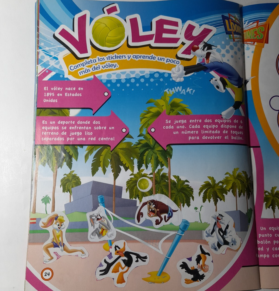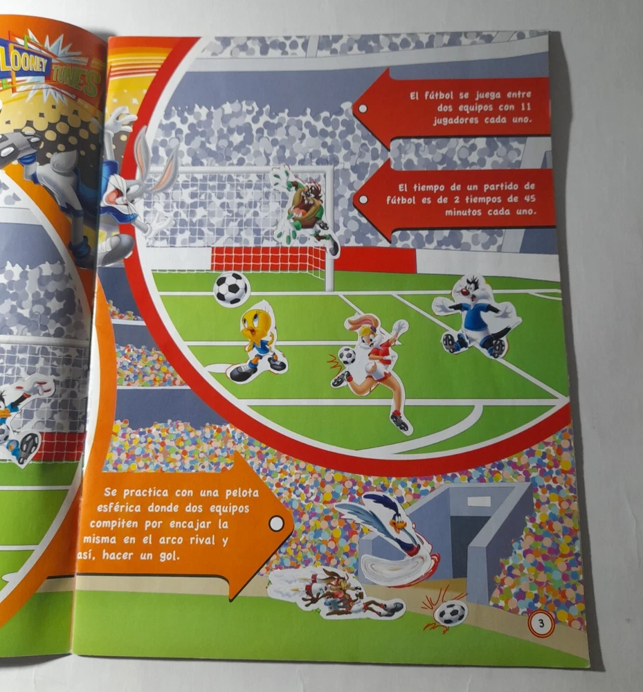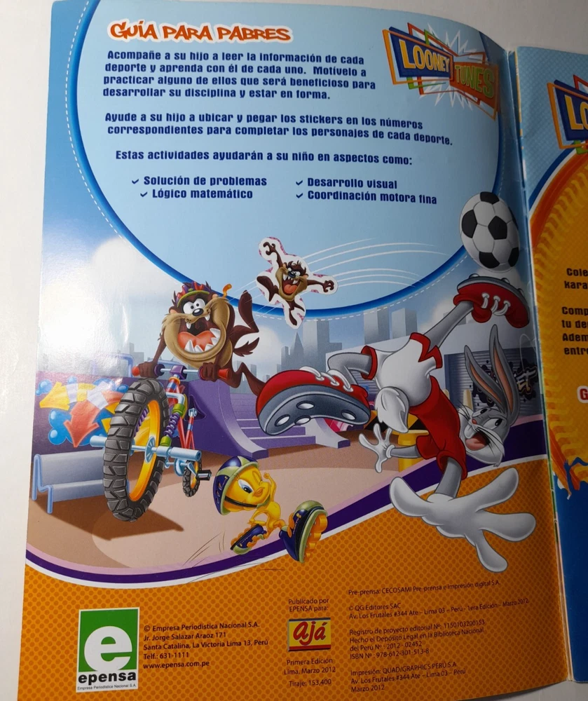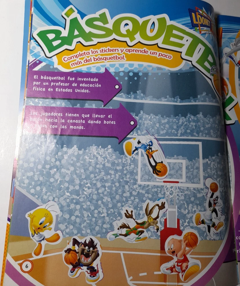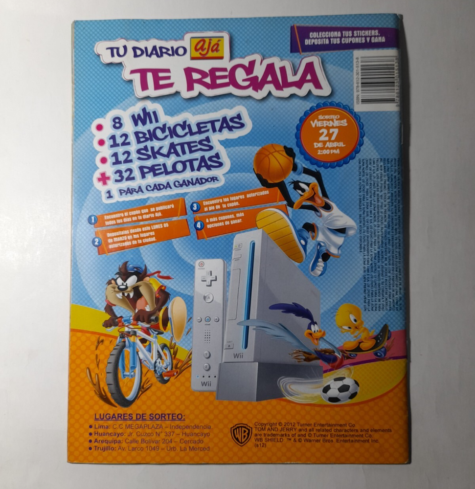 Full sticker album from the 2012 of looney tunes, one interesting edition than come out with the peruvian newspapers called Aja, this album is about diferents sport like a fooball and bascket ball like can see in the photos