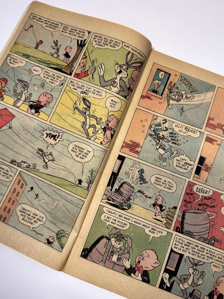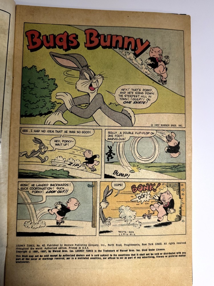 Up for sale is a vintage Looney Tunes #42 comic book, published by Whitman Comics (Western Publishing). This issue features classic characters like Bugs Bunny, Porky Pig, Sylvester, Tweety, and more in a fun, full-color story. Copyright references inside suggest original storylines from 1957, with this Whitman reprint likely dating from the early 1980s. Format: Softcover Language: English Characters Featured: Bugs Bunny, Porky Pig, Sylvester, Tweety, Elmer Fudd Great for collectors of: Vintage cartoon memorabilia Looney Tunes fans Whitman comic collectors Shipping: Comic will be securely packaged with a backing board and protective sleeve. Ships via USPS First Class or Media Mail. Details: Publisher: Whitman (Western Publishing) Issue: Looney Tunes #42 Cover Price: 60¢