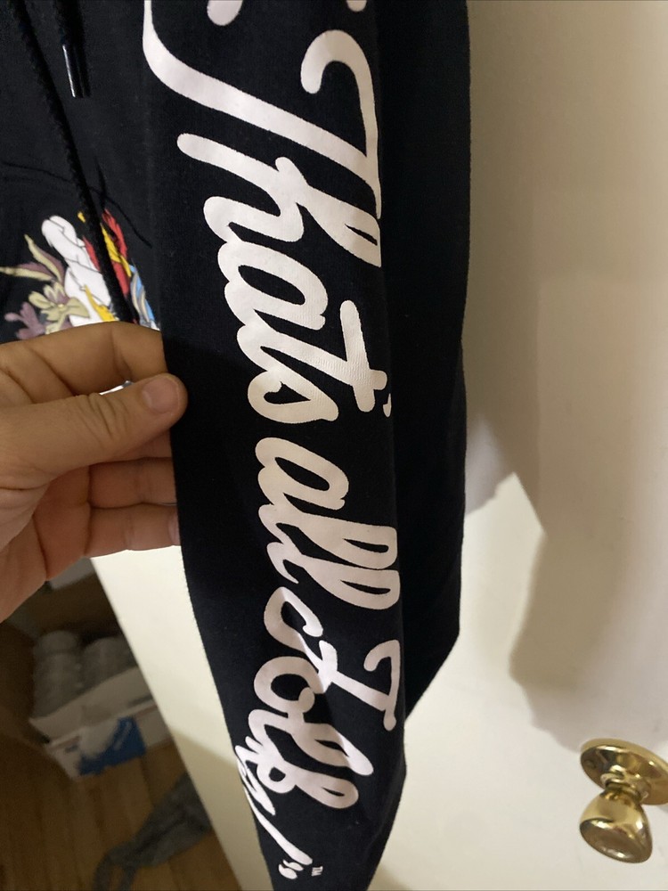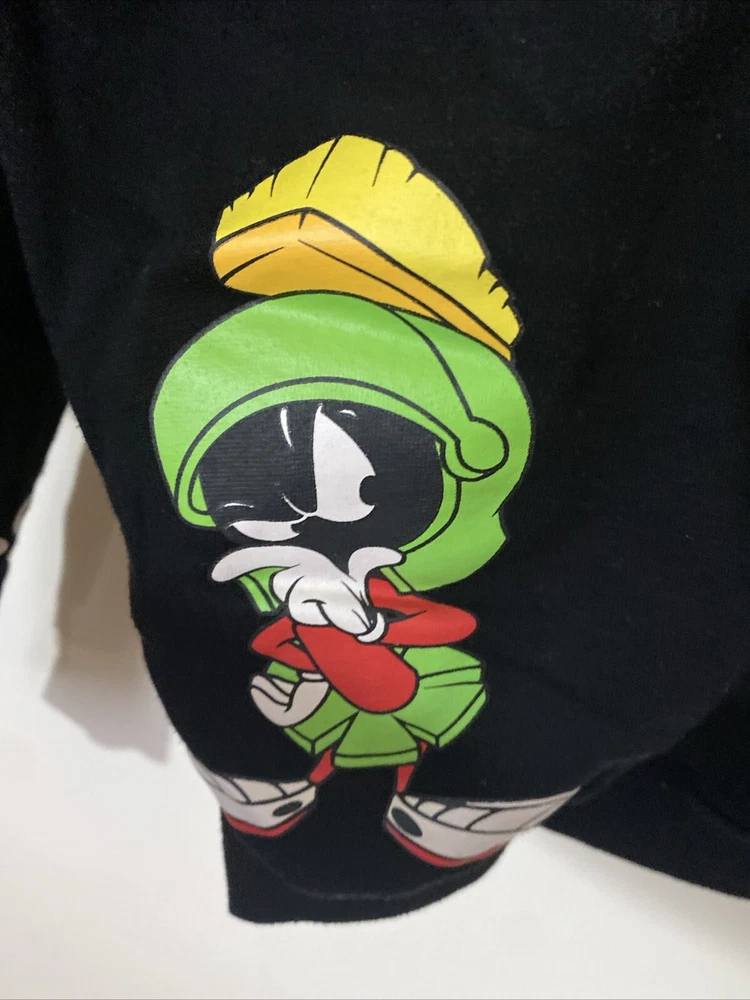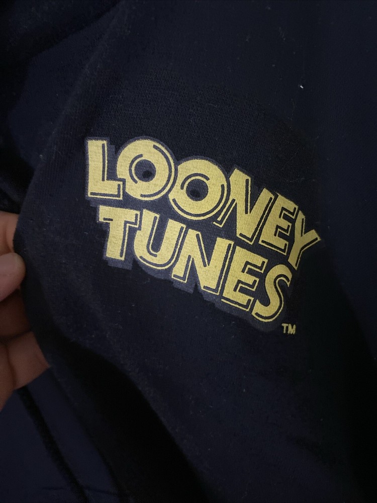 This hoodie is a must-have for any Looney Tunes fan! Despite slight signs of wear, it’s in great shape and just needs a quick wash to freshen up. The fit is true to size, super cozy, and the Tune Squad design brings serious nostalgia. Perfect for casual wear or showing off your Space Jam love. Super happy with this find!