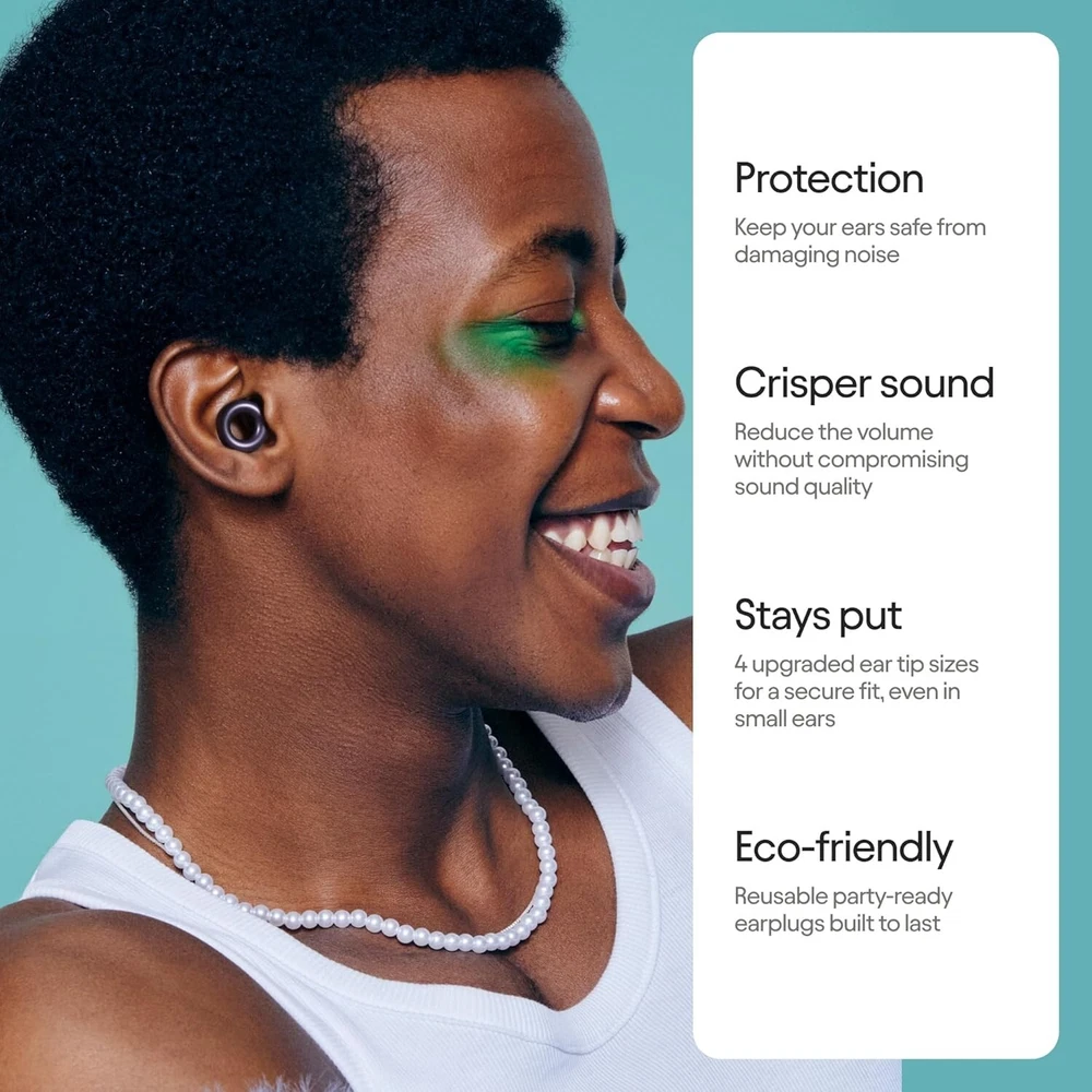 Loop Experience 2 Ear Plugs – Stylish Certified Hearing Protection for Concerts & Festivals, Live Events, Musicians, Sports, DJs and Nightlife – 17dB Noise Reduction Earplugs (High-Fidelity) About this item LESS NOISE, CRISPER SOUND – Enjoy the moment at your volume with Experience 2 earplugs. Designed with live events in mind, Experience 2 earplugs lower the volume without compromising sound quality, ensuring a crisp, clear listening experience at concerts, festivals, sporting events and beyond. CERTIFIED HEARING PROTECTION – Loop Experience 2 earplugs qualify as certified hearing protection, keeping your ears safe from damaging noise for peace of mind in loud situations. Experience 2 offers 17 dB (SNR) of filtered noise reduction. MADE FOR DANCING AND MOVING – Designed to stay put day and night, Experience 2 earplugs are the perfect event companion. Customize your fit with 4 upgraded ear tip sizes for a secure fit, even in smaller ears. Loop earplugs are reusable, easy to clean and built to last. EASY TO USE – Experience 2 earplugs are easy to insert and come with adjustable ear tip sizes for optimal noise reduction and a comfortable fit throughout the day. Just pop them in, twist to secure and head out at your volume. When inserted correctly, Experience 2 earplugs shouldn't stick out from the front. IN THE BOX – 1 set of Loop Experience 2 earplugs, 4 sets of silicone ear tips (sizes XS + S + M + L), 1 portable and convenient keychain Carry Case. Important information Safety Information: Choking Hazard Warning: Please note, this product contains small parts and may present a choking hazard for children under 3 years of age. Keep out of reach of young children. Directions: For detailed instructions on how to use the earplugs, please scan the QR code included in the packaging. The code will provide step-by-step guidance to ensure proper fit and optimal protection. Product Description