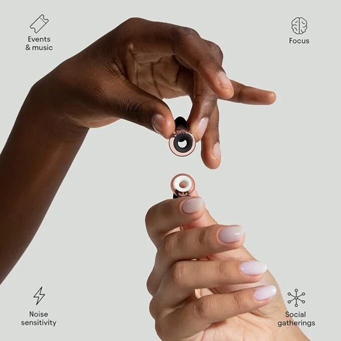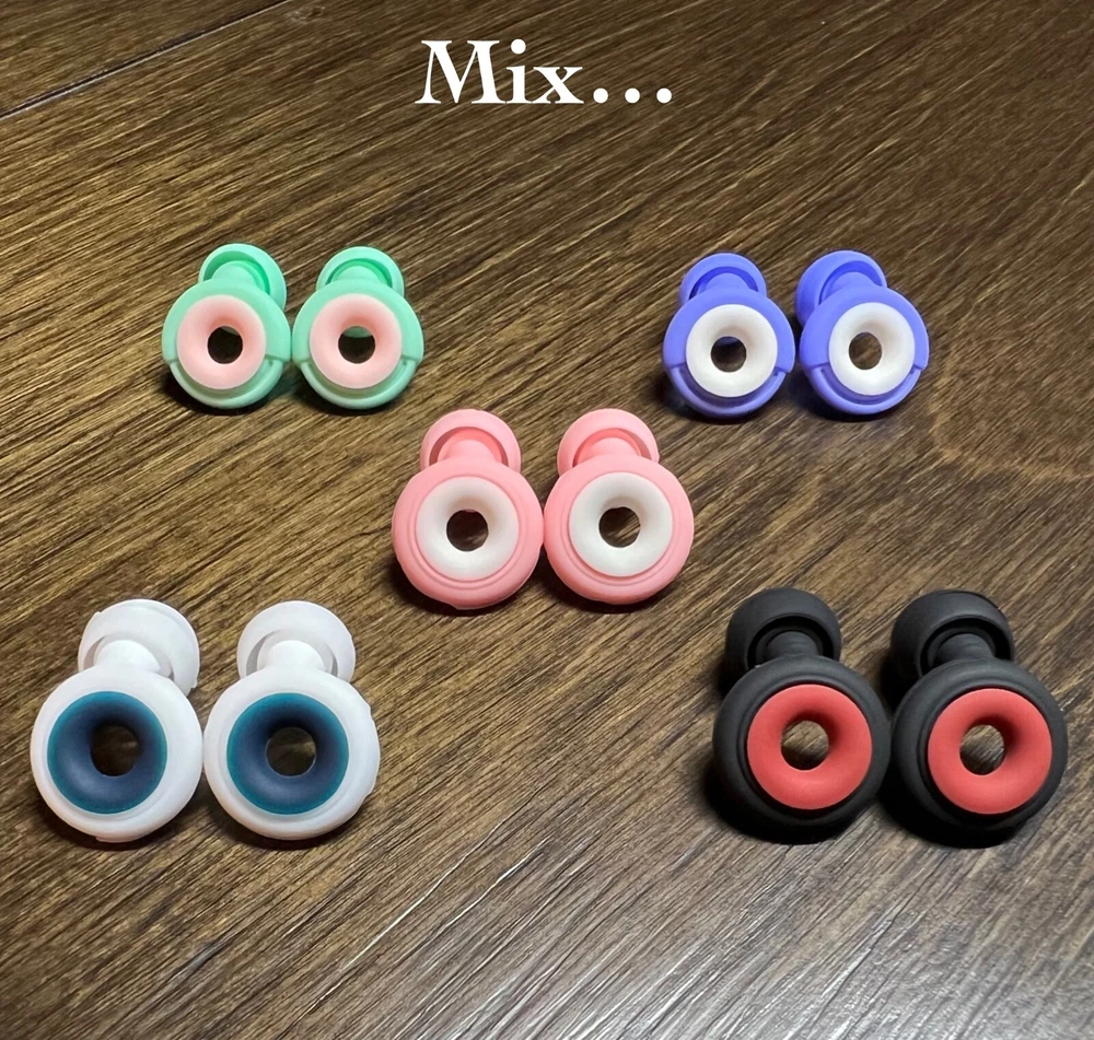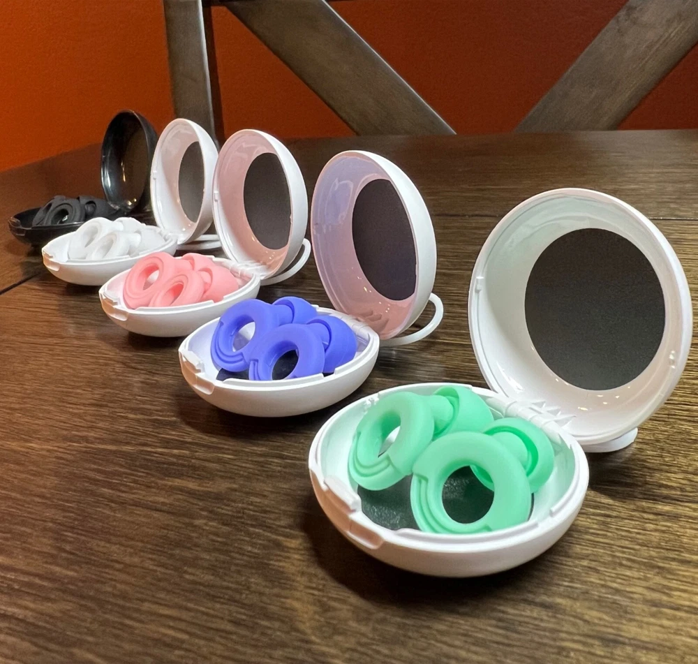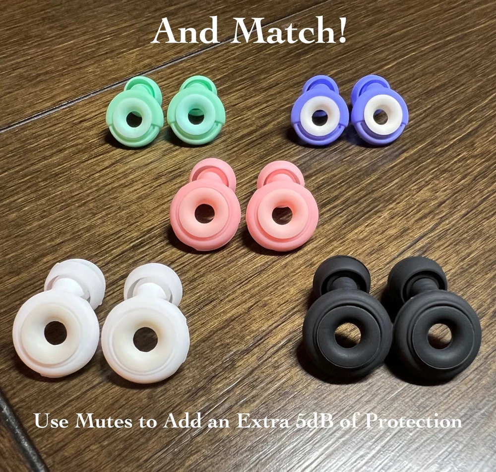 Loop style earplugs at a fraction of the cost. Each earplug comes with 4 pairs of tips, sizes S, M, L, XL Clear cases have no Keychain loop White and black cases have a Keychain loop Mute packs come with 2 of each colour. May be shipped separately