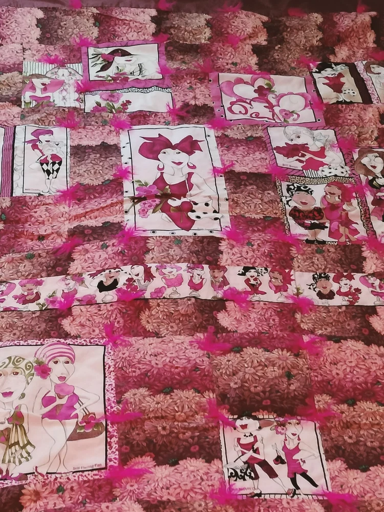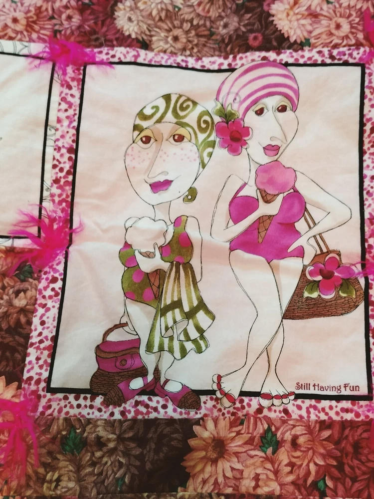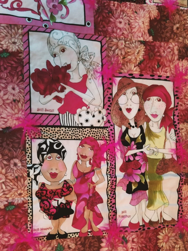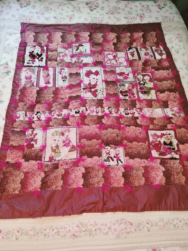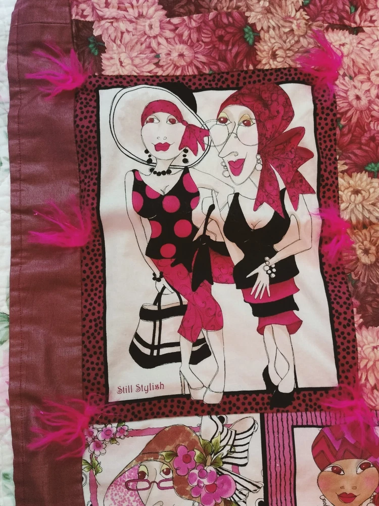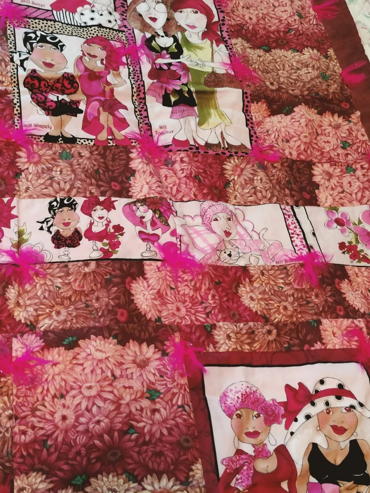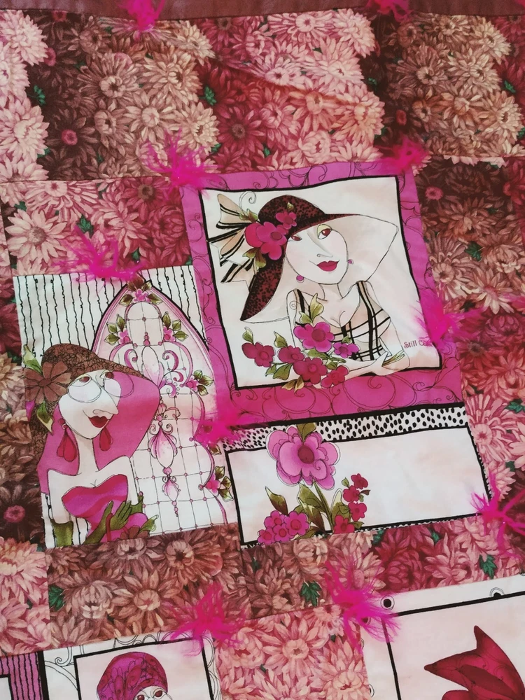 This beautiful throw quilt with Loralie Designs On The Mend original drawings is a perfect addition to any collection. The quilt is handmade with a patchwork technique and features a multicolor design, making it a perfect statement piece. The dominant color of the quilt is pink, which adds a touch of femininity to any room. The quilt is made of a cotton blend material, making it soft and comfortable to use. The On The Mend Breast Cancer Awareness Throw Quilt is a perfect gift for anyone who has been affected by breast cancer. It is a unique and personalized piece that will surely make a statement. This quilt is signed by the artist and is an original piece, making it a valuable addition to any collection.