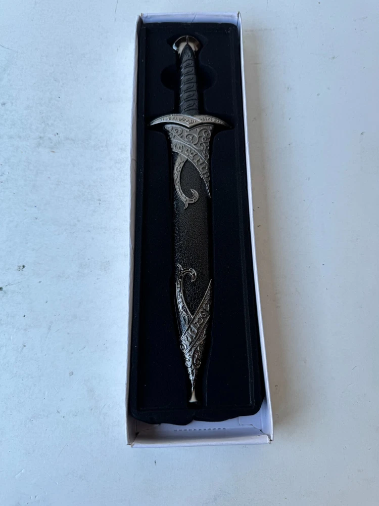 Lord of The Ring Medieval Hobbit Sting Sword Replica with Pointed Hard Sheath Description Lord of The Ring Medieval Hobbit Sting Sword Replica with Pointed Hard Sheath. Product Detail • Theme : Lord of The Ring • Blade Material : Stainless-Steel • Blade Color : Silver • Type : Sword Please message me if you have any questions.