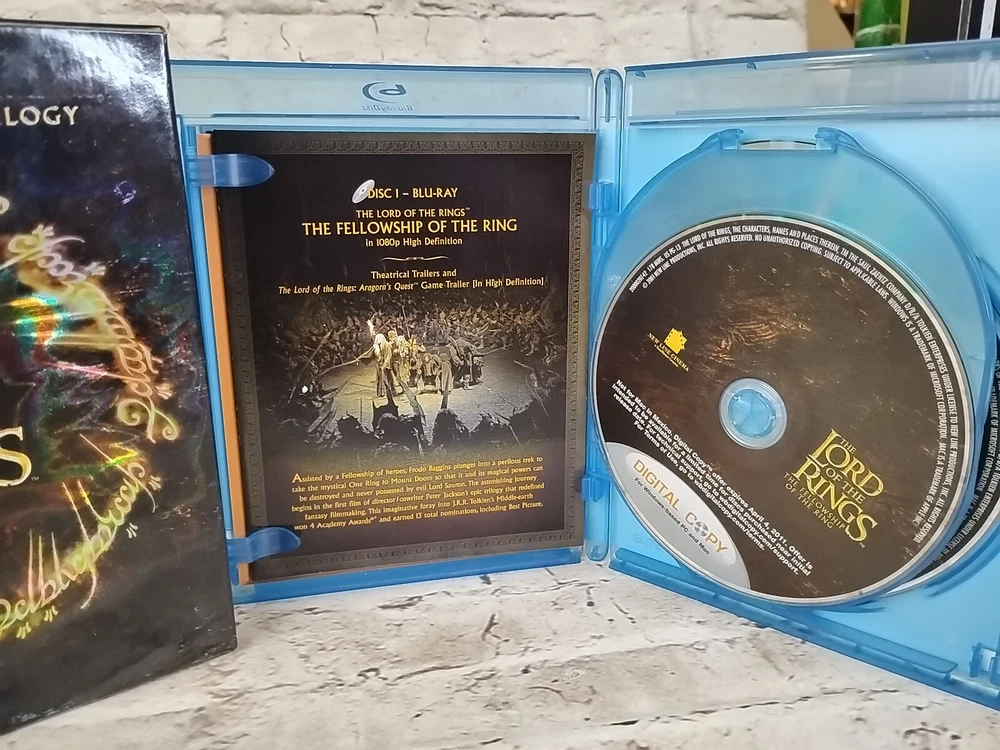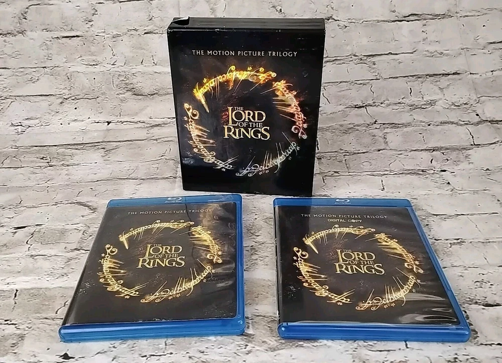 The "Lord of the Rings: The Motion Picture Trilogy" Box Set is a Blu-ray collection containing the iconic fantasy film series based on J.R.R. Tolkien's novels. This edition includes all three films in the trilogy - "The Fellowship of the Ring," "The Two Towers," and "The Return of the King," providing a total run time of 681 minutes of epic storytelling. The set also includes a digital copy for convenient viewing across devices, making it a must-have for fans of the fantasy genre and The Lord of the Rings franchise.
