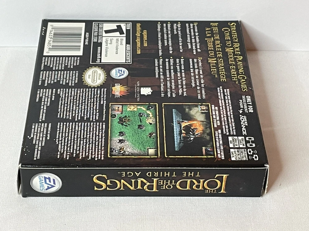 Game Name: The Lord of the Rings: The Third Age, Lord of the Rings: the Third Age Region Code: NTSC-U/C (US/Canada) UPC: 0014633148510 Release Year: 2004 Publisher: EA Games Platform: Nintendo Game Boy Advance Genre: Role Playing gtin13: 0014633148510