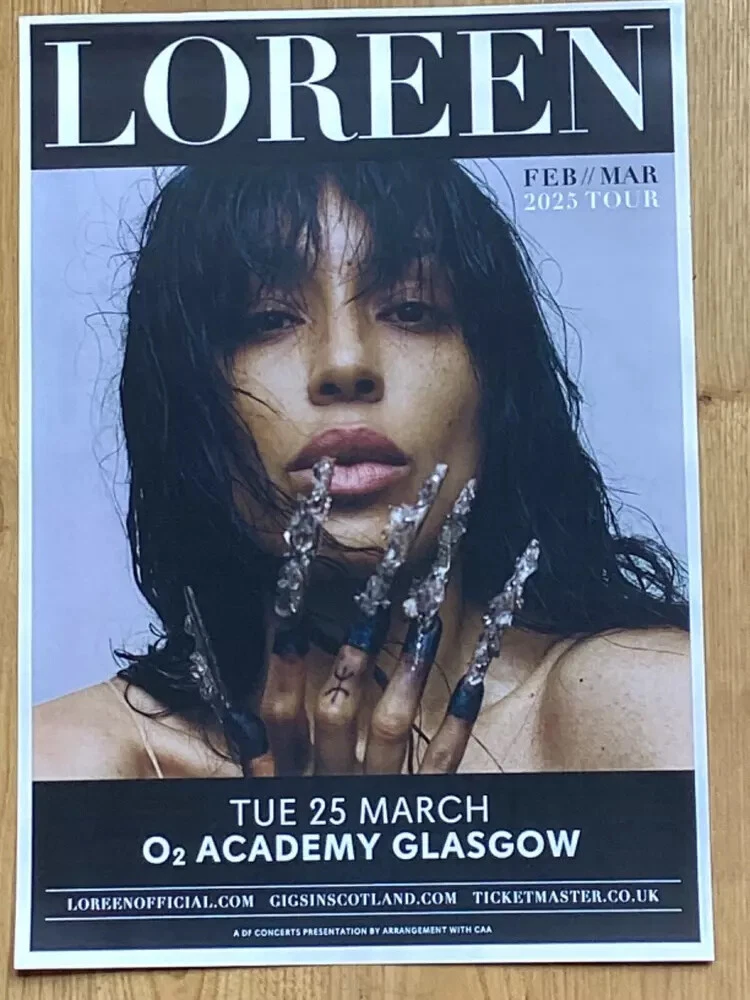 Loreen concert poster.- Glasgow march 2025 music band show tour gig memorabilia.
