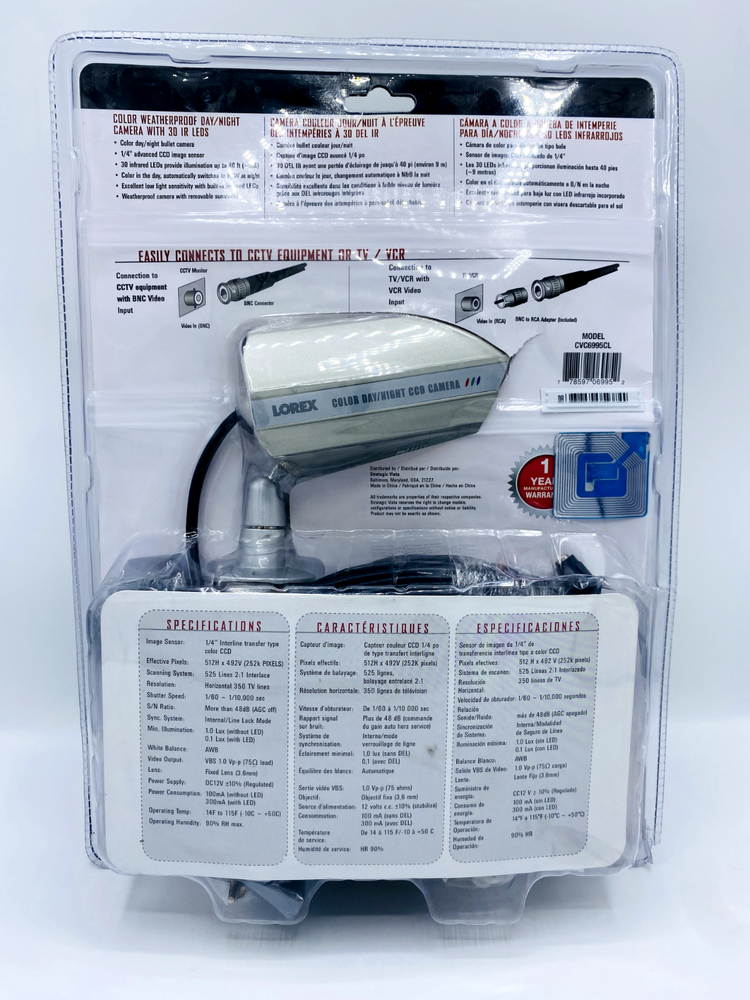 BRAND NEW NEVER OPENED - Films in color during daylight and black and white at night - includes 63 ft. power cable - weatherproof, waterproof, & includes removable sunshield FREE NEXT DAY SHIPPING !!! Please don't hesitate to message with any inquiries! 07