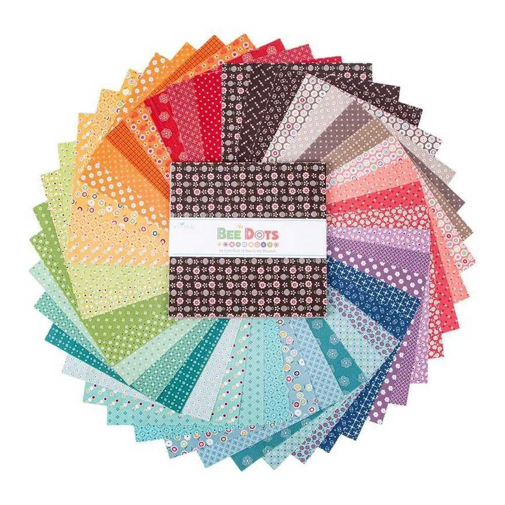 Fabric bundle of 42 10-inch squares from the Bee Dots collection by designer Lori Holt (Bee In My Bonnet) for . Dot, dot, stitch, stitch, oh-what fun this is! Bee Dots is a celebration of the fashionable and iconic print we all adore. Lori rejuvenates the dot in her classic and vintage style. From florals with dots to dots on dots and available in colors like berry, pumpkin, marigold, basil, and sea glass. This new basic will inspire and delight oh-sew cute quilts and projects for your home. Each print is named after Lori's vintage relatives on her father's side of the family. Lori has also created a new delightful Daisy Dots Home Dec print that's perfect for so many vintage-inspired projects! Bee Dots collection from Designed by Lori Holt (Bee In My Bonnet) 10" Stacker (Layer Cake) includes 42 10-inch squares 100% Cotton; premium quilt shop quality fabric